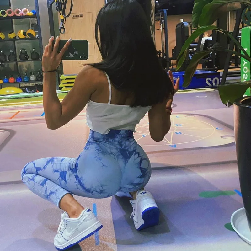 Штаны для йоги с принтом Tie Dye, женские эластичные обтягивающие штаны с эффектом пуш-ап и высокой талией для бега