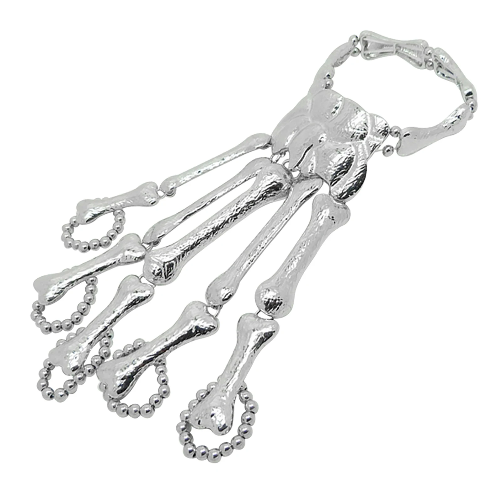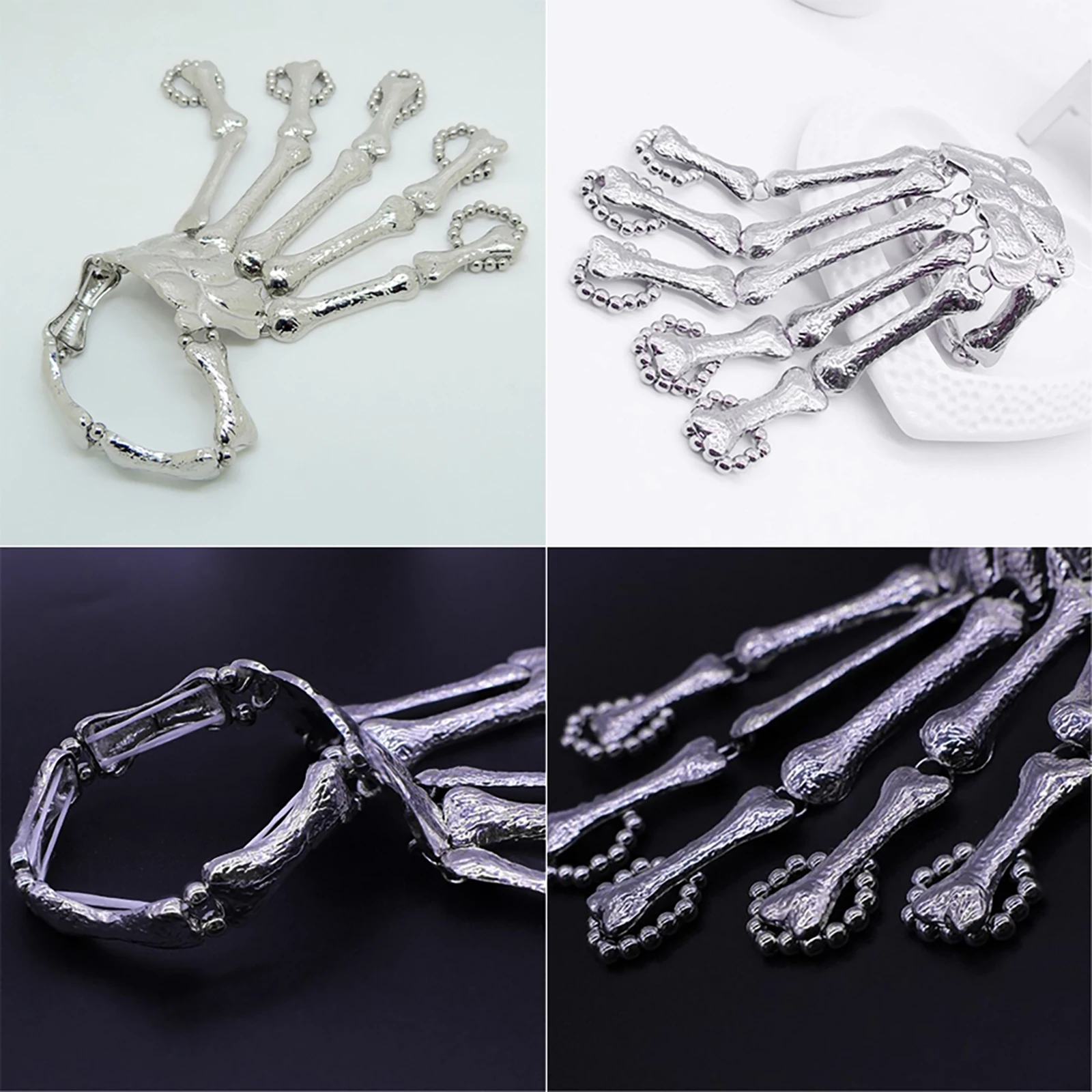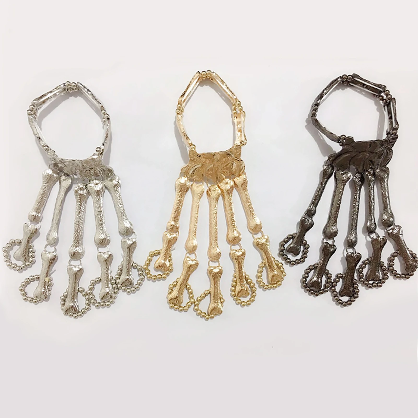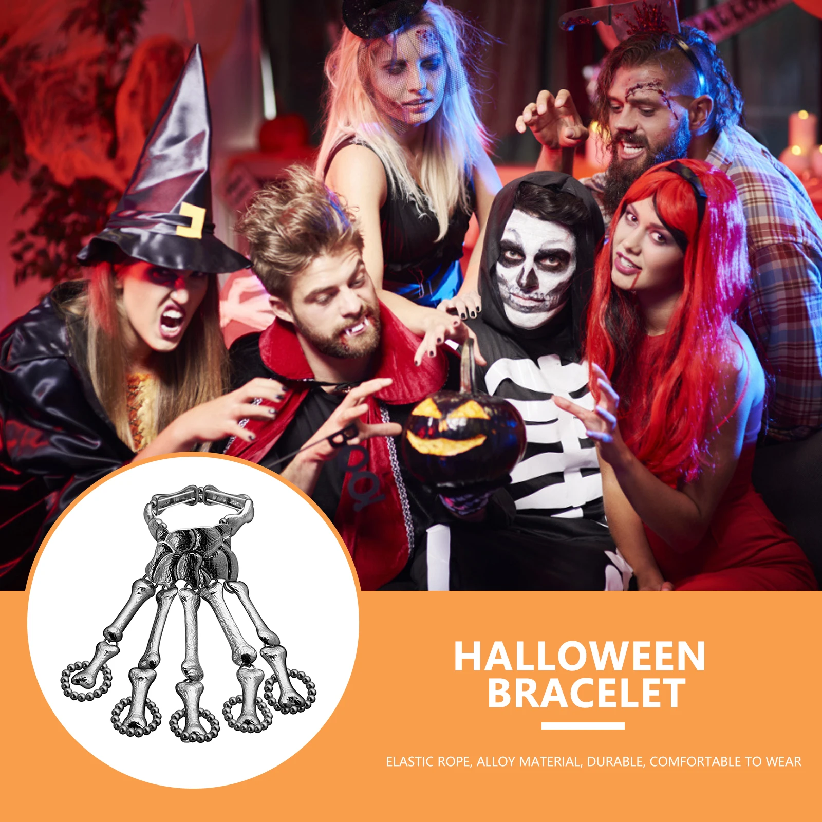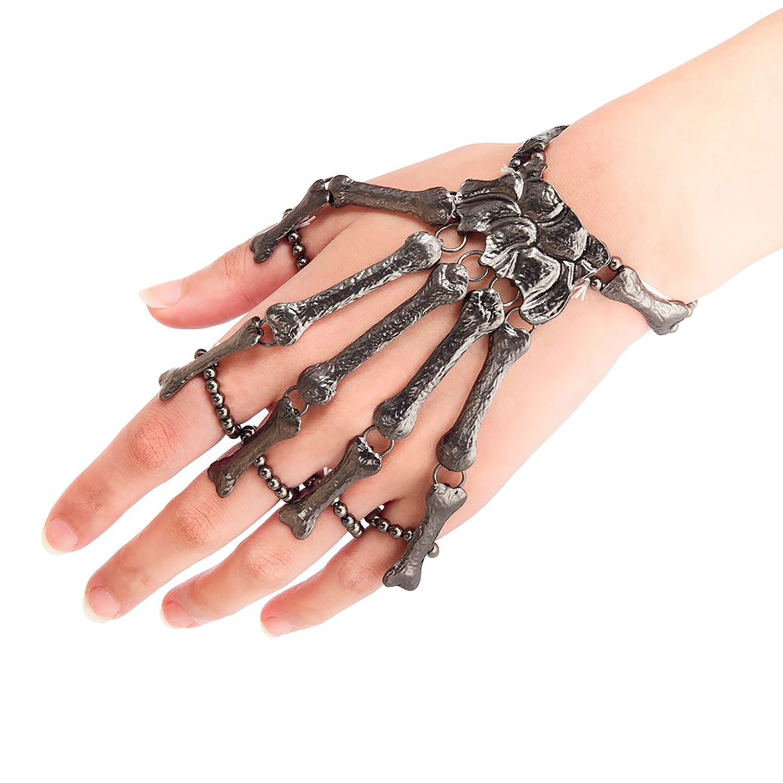 Хэллоуин Скелет пальцев браслет, сплав скелет ручной браслет, реалистичный Скелет Браслет, соединенный с кольцом на пальце с гибким соединением и кольцами, ручной браслет для вечерние платья Косплей Костюм реквизит