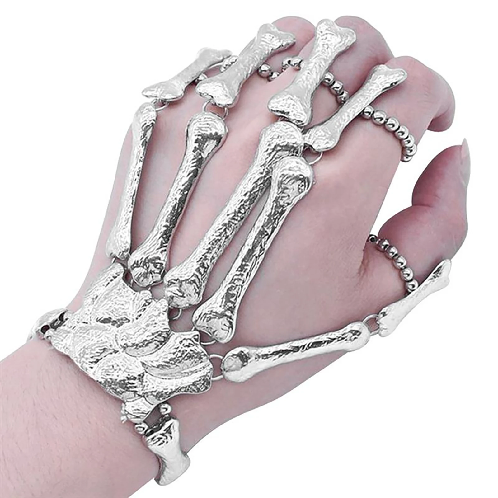 Хэллоуин браслет, соединенный с кольцом на пальце готическом стиле скелет руки браслет, соединенный с кольцом на пальце и вечерние украшения.
