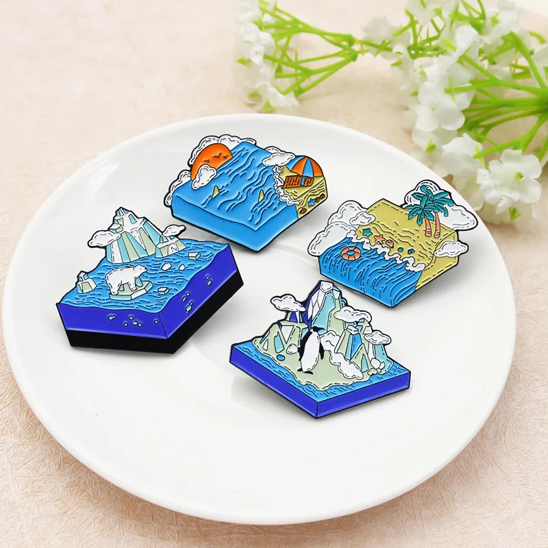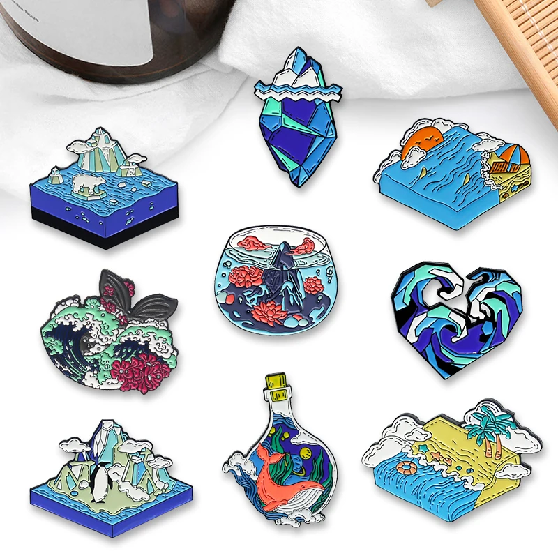 Мужскаяженская брошь на лацкан, с изображением синего ледника