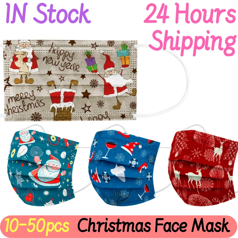 10 шт., одноразовые рождественские маски с 3-слойными фильтрами