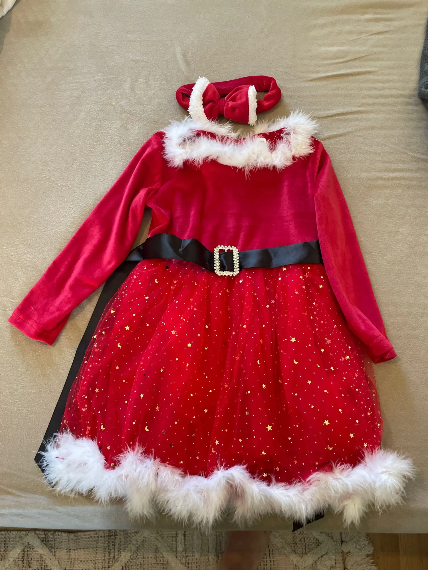 Платье-трапеция с длинным рукавом для маленькой девочки, красное бархатное платье с сетчатой прострочкой, с повязкой на голову, рождественское платье с перьями