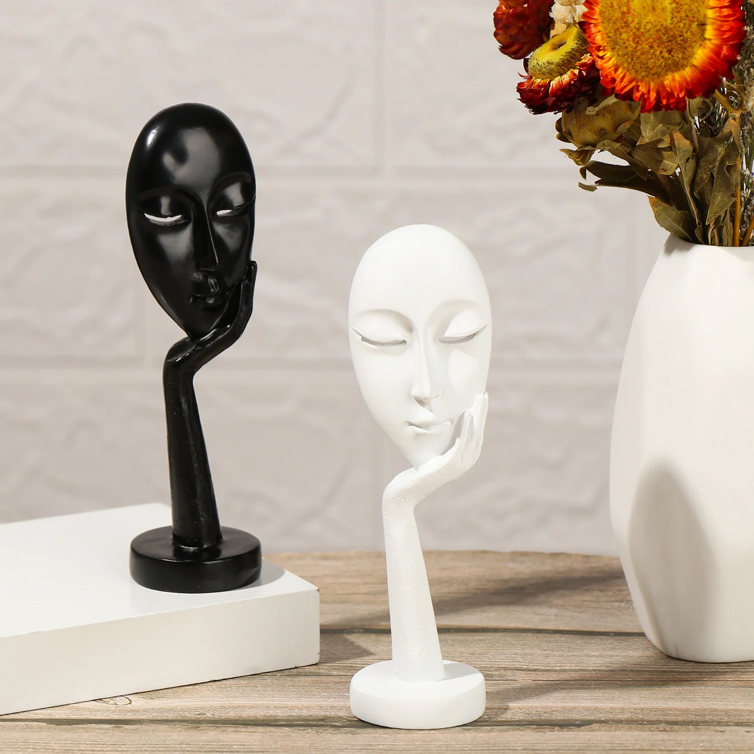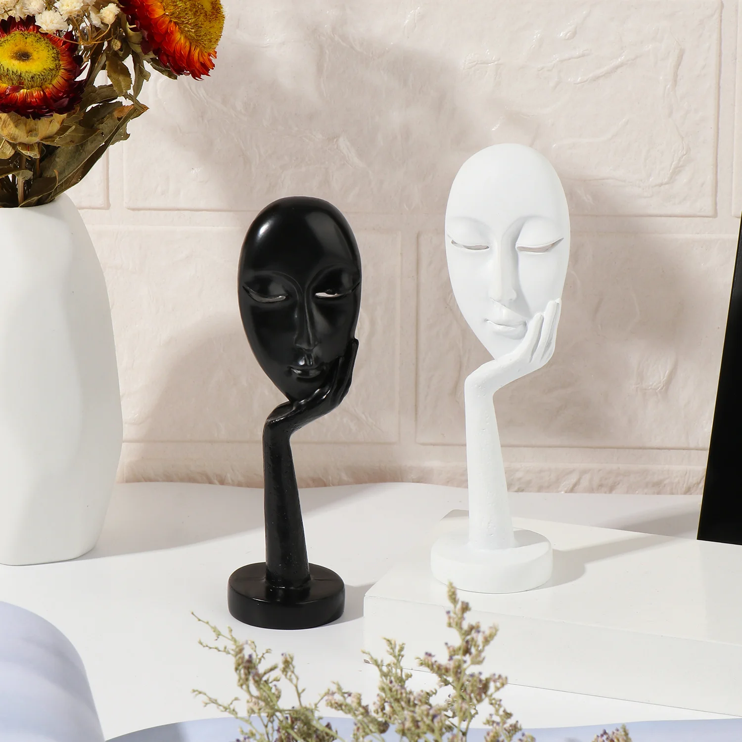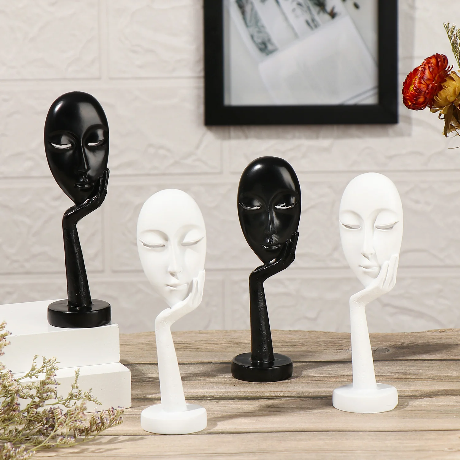 Статуэтка с абстрактным изображением женщины, лицо, резьба, статуэтка, белая и черная, женская скульптура, ручная работа, статуи лица женщины