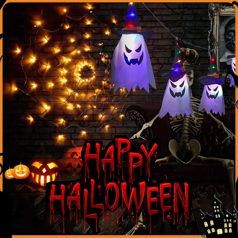 Украшение на Хэллоуин, 2 вида, паук, сетка, украшение для гостиной, Рождество для домашнего декора, светодиодный привидение, светящийся волшебник, искусство