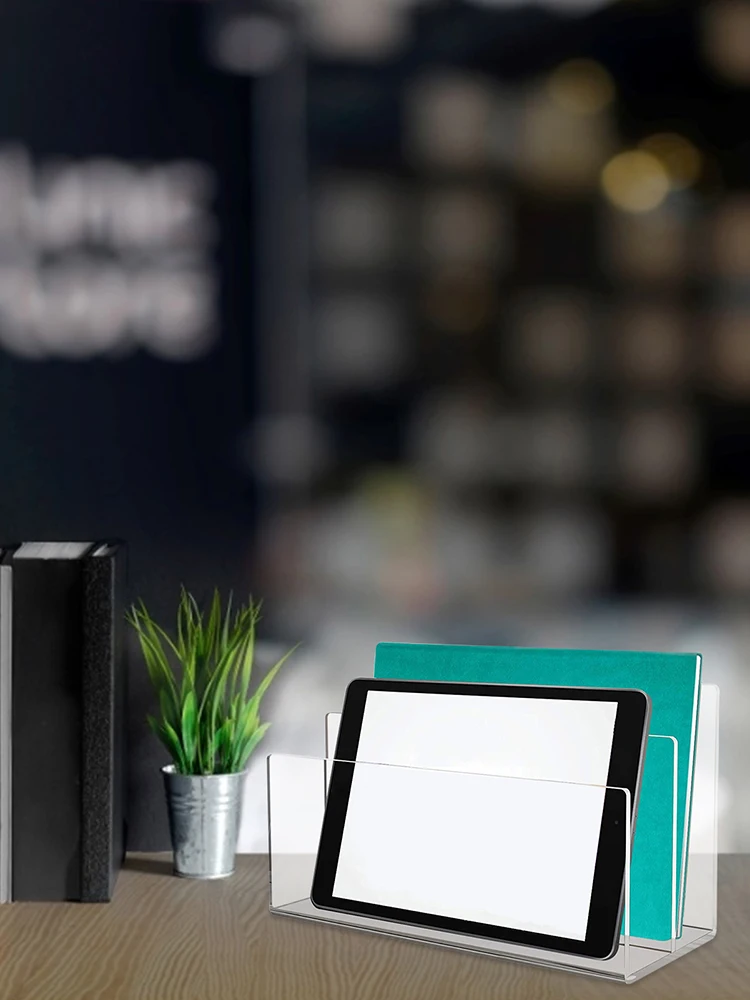1. Органайзер для офисных файлов: основная цель этого продукта-организовать офисные файлы и помочь вам решить проблему файлов, не найденных в неправильном месте.2. Акриловый материал: высокая прозрачность и высокое качество. Текстура акрилового материала лучше, чем обычные материалы, которые просты и модны.3. Прочный и красивый: он предназначен для вашего удобства и использования в течение всего срока службы. Он изготовлен из цельной формы и не легко ломается. Высококачественный, плотный акрил Небьющийся и прочный.4. Многофункциональная стойка для хранения: она удобна и достаточно велика для хранения всех ваших ноутбуков, связующих, конвертов, книг, электронных продуктов, мобильных телефонов, планшетов, косметических палитр и т. д.5. Размер изделия: общий размер составляет около 215*112*138 мм/8,46*4,41*5,43 дюйма. И интервал каждой секции составляет около 50 мм/1,97 дюйма.