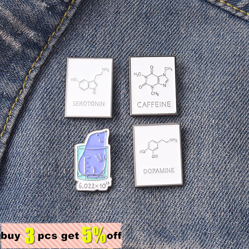 Эмалированные булавки с символами химикатов, броши с кофеином допам...