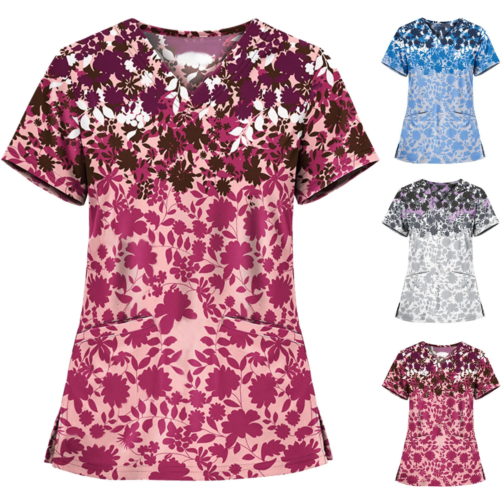 Женские топы с v-образным вырезом и коротким рукавом, рубашка с карманом, Рабочая Униформа, блузка