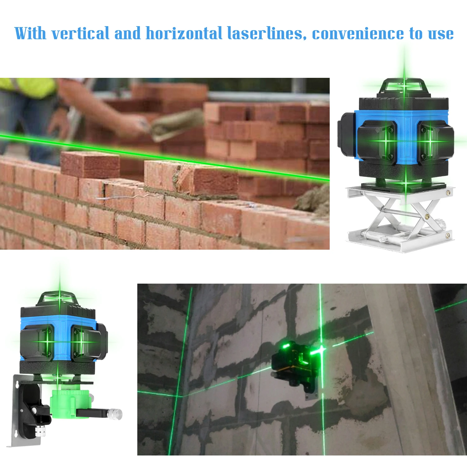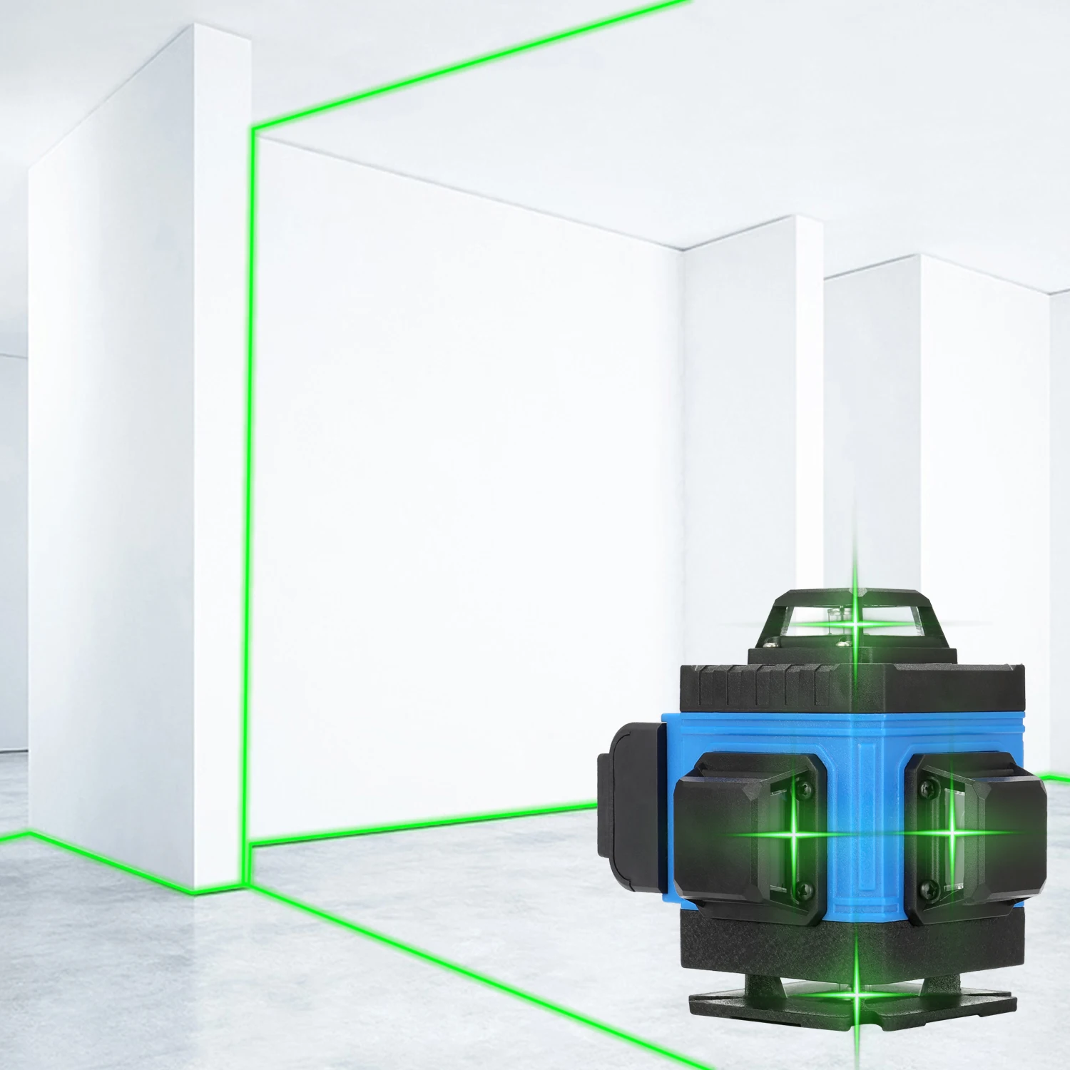 Лазерный уровень KKmoon, 16 линий, 4D 12 линий, 3D самонивелирующийся, 360 градусов, горизонтальный и вертикальный крест, сверхмощный зеленый лазерный луч