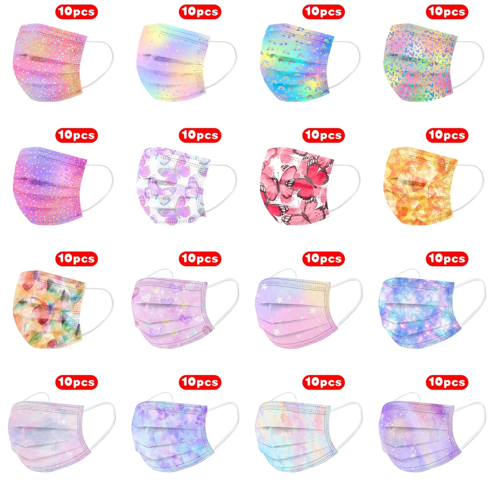 10 шт Детский галстук-крашеный одноразовый защитный промышленный три слойная маска для лица