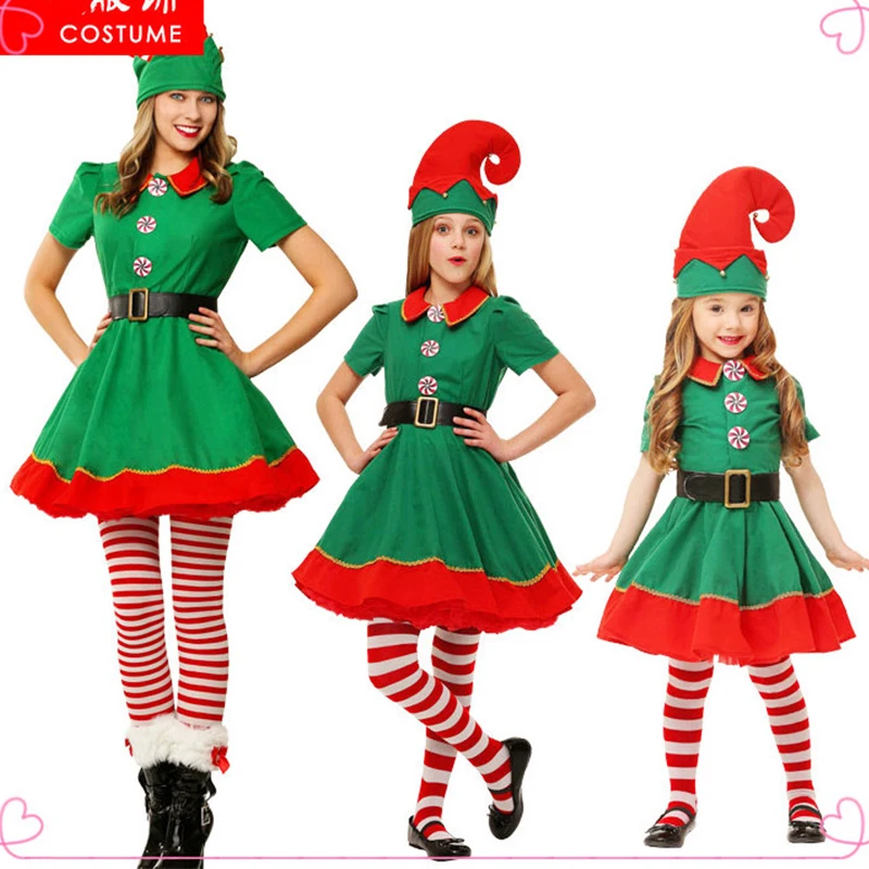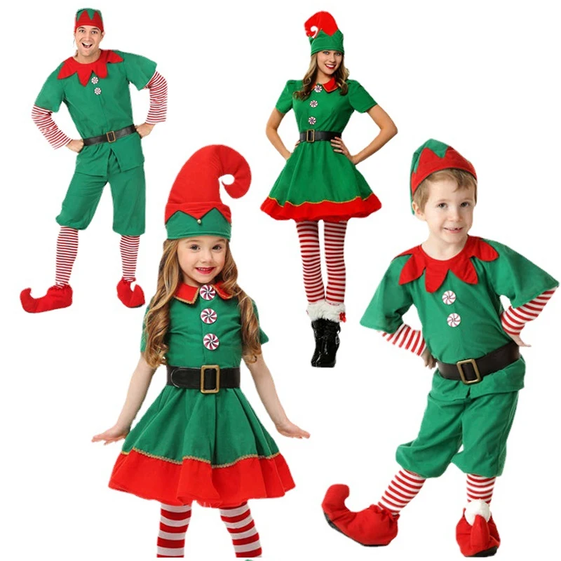 Наряд для мальчиков и девочек Green Elf Рождественский наряд для родителей и детей Новогодняя одежда для детей нарядное платье для рождевечерние 2021