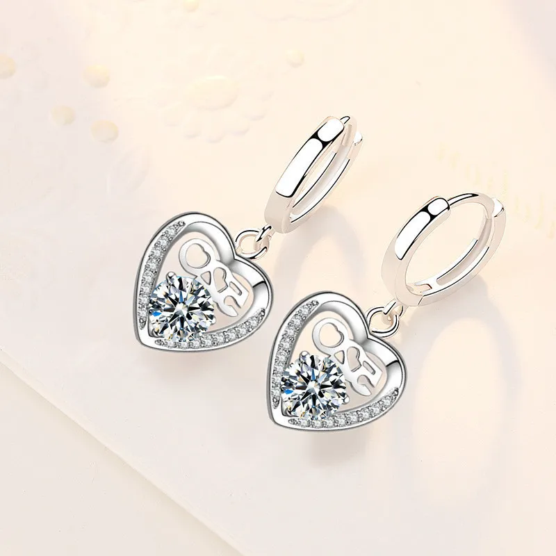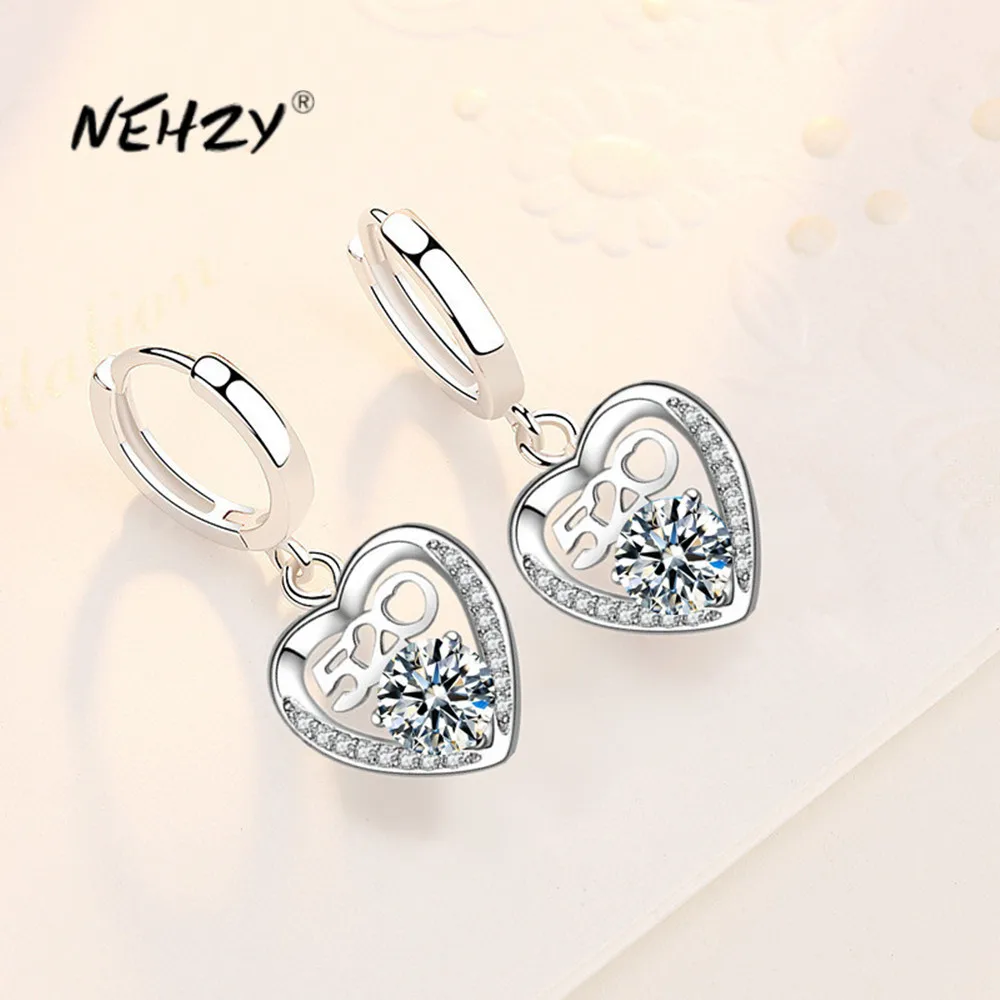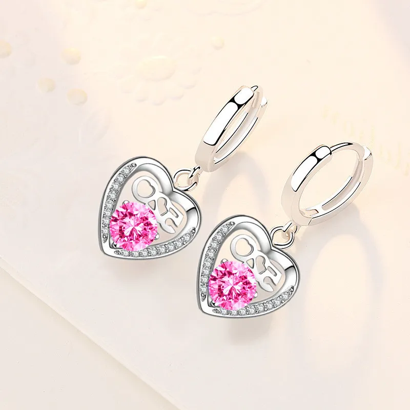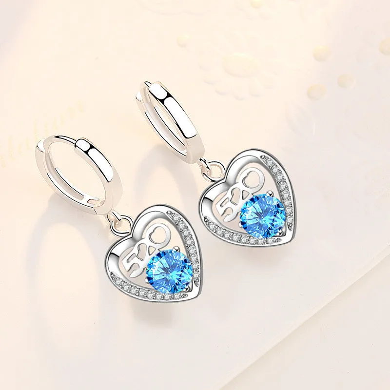 Женские серьги из серебра 925 пробы, с голубым кристаллом, циркониевый в форме сердца