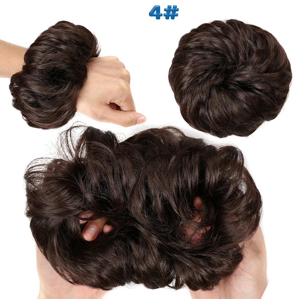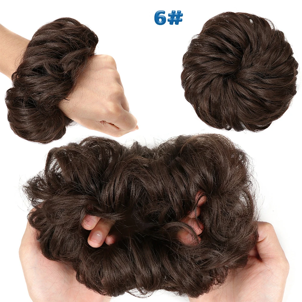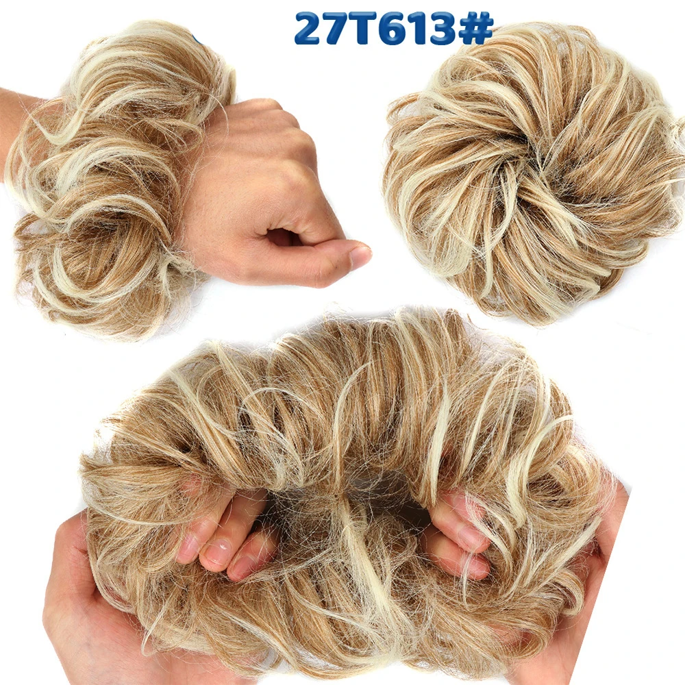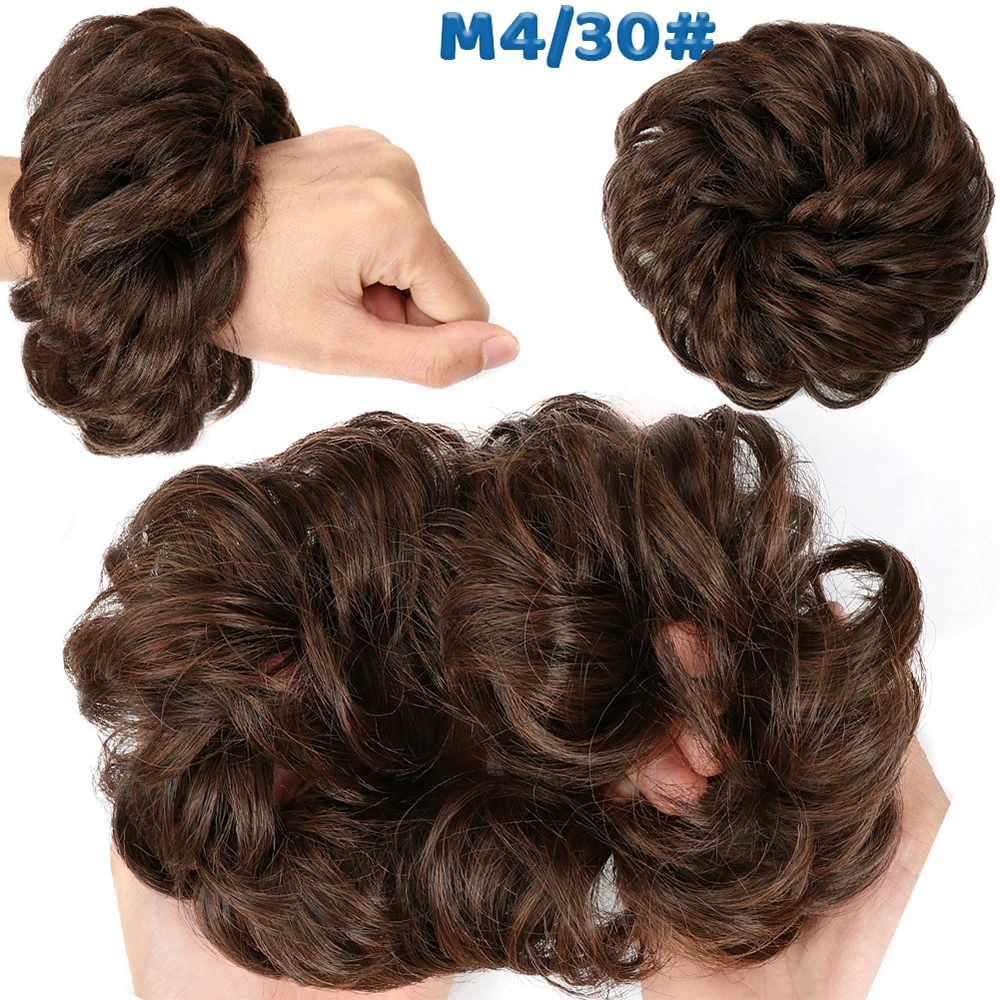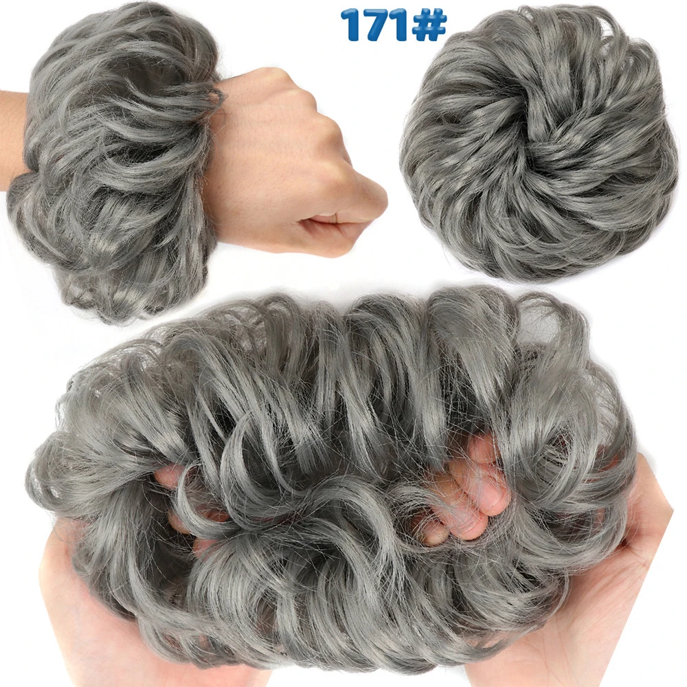 Дешевый пучок волос, кудрявый шиньон с резиновой лентой, Коричневые Серые синтетические волосы, накидка на пучок, хвост для девочек