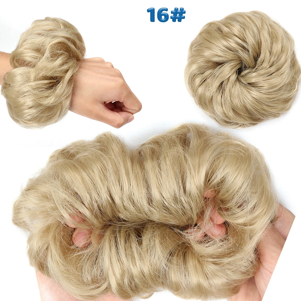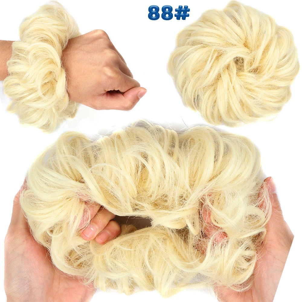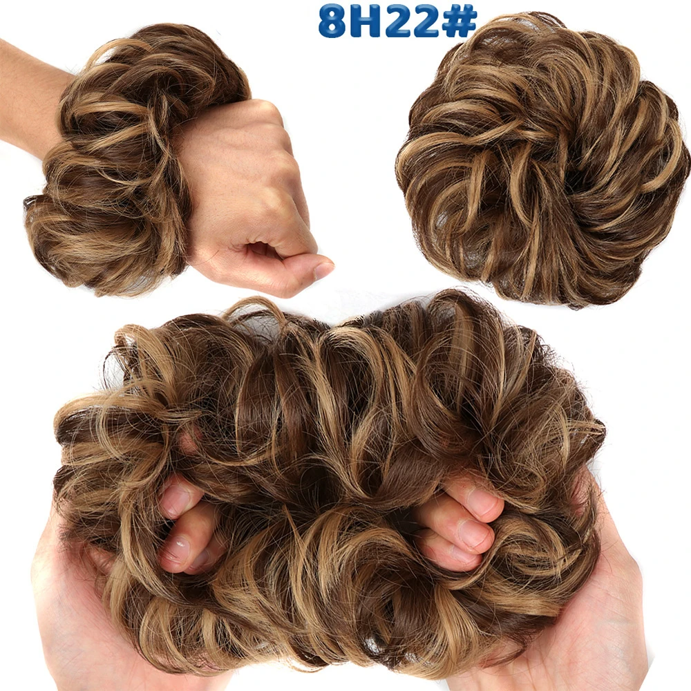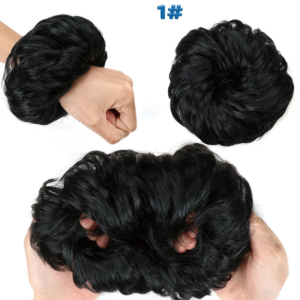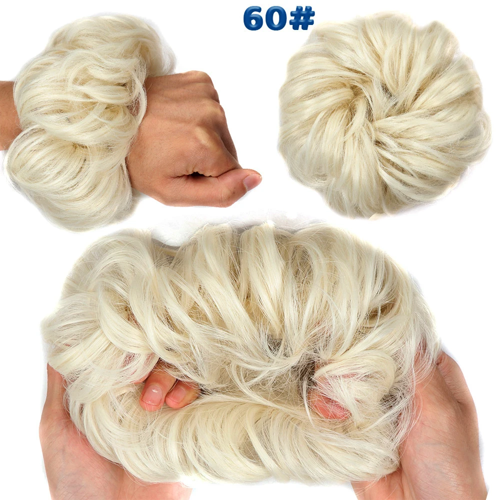 Дешевый пучок волос, кудрявый шиньон с резиновой лентой, Коричневые Серые синтетические волосы, накидка на пучок, хвост для девочек