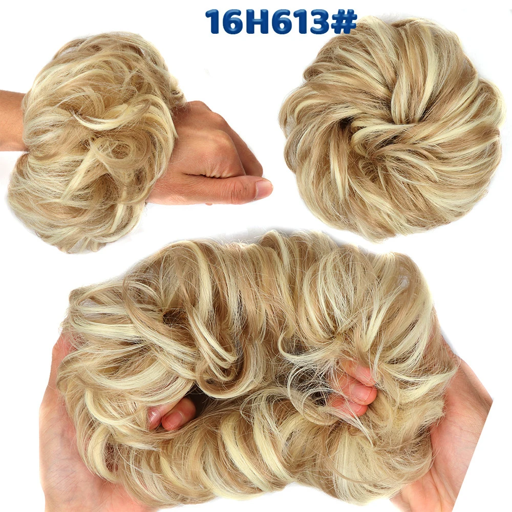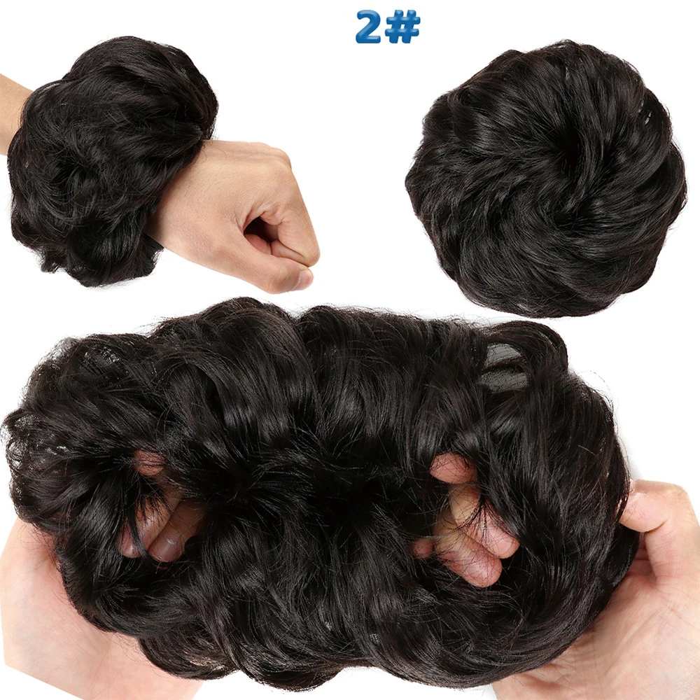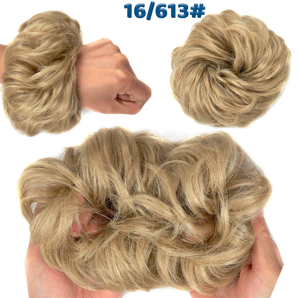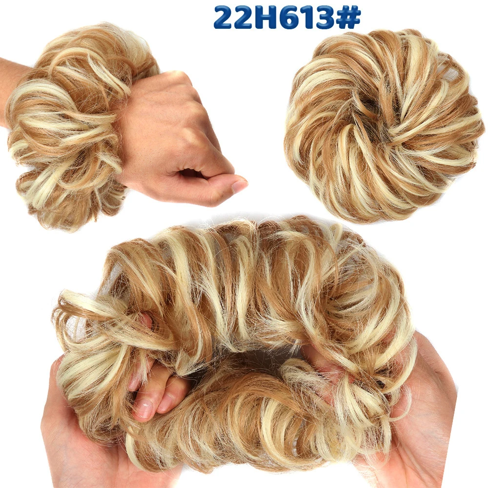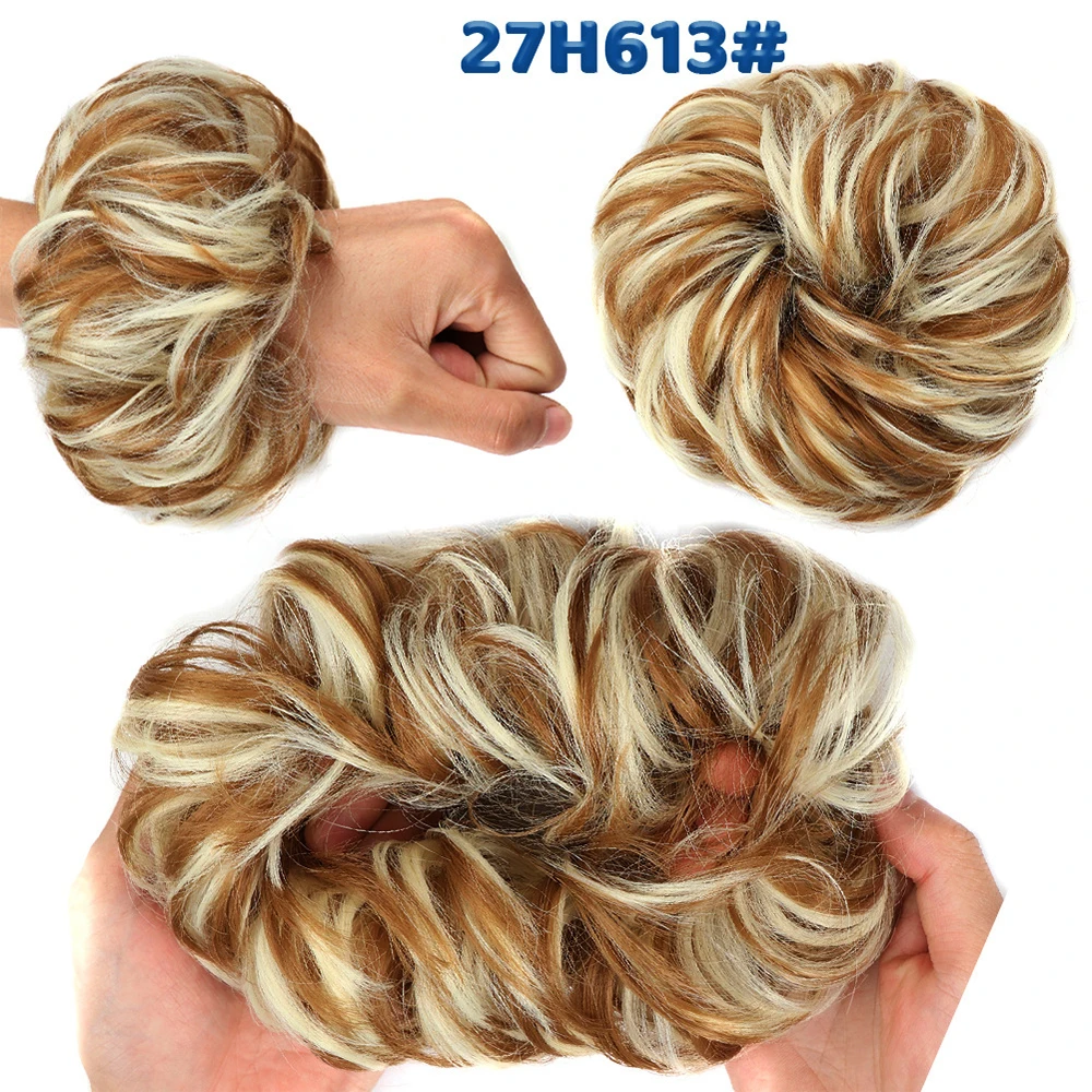 Дешевый пучок волос, кудрявый шиньон с резиновой лентой, Коричневые Серые синтетические волосы, накидка на пучок, хвост для девочек