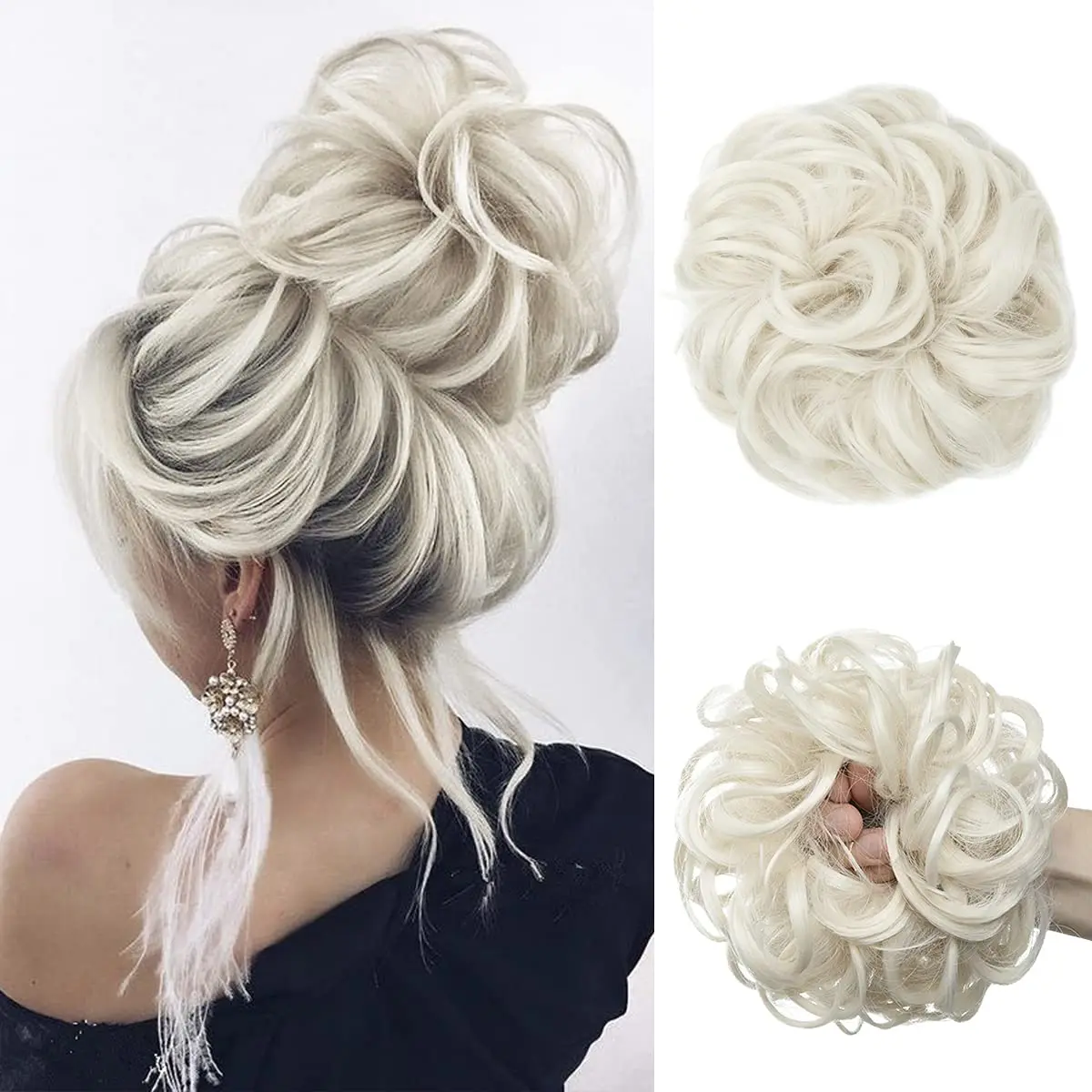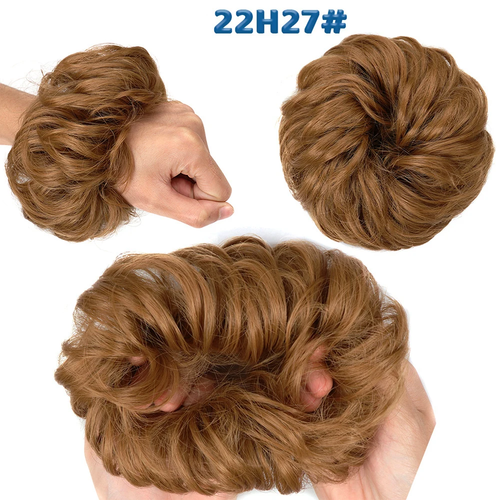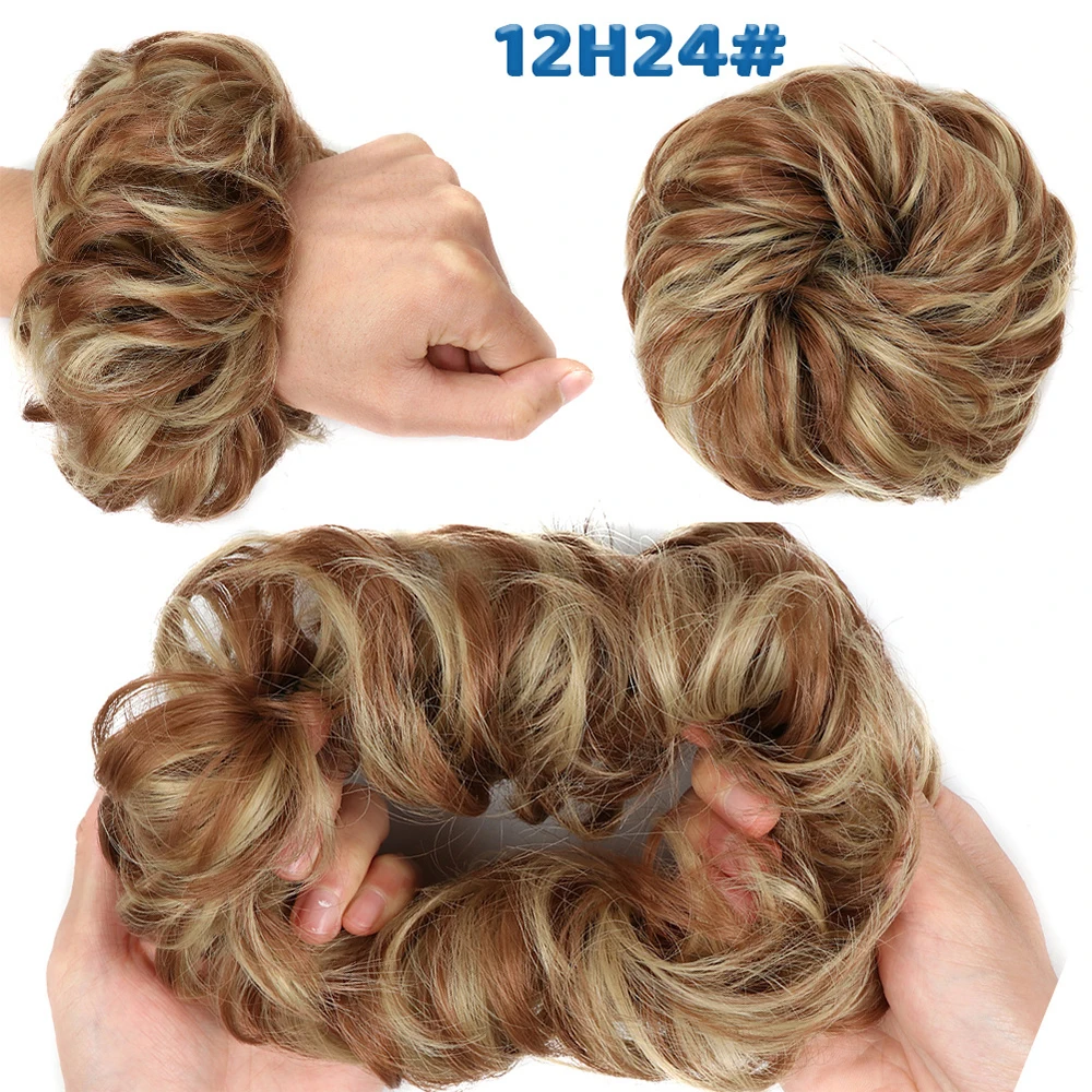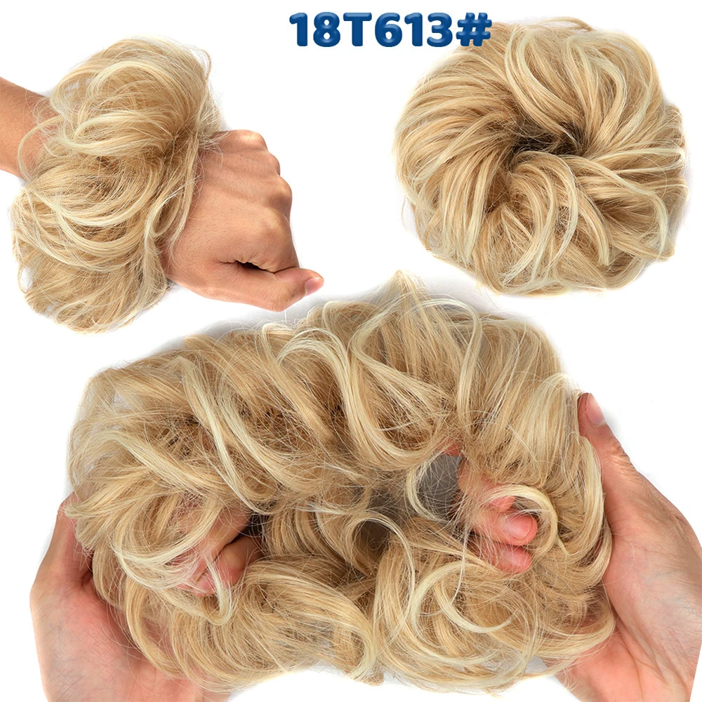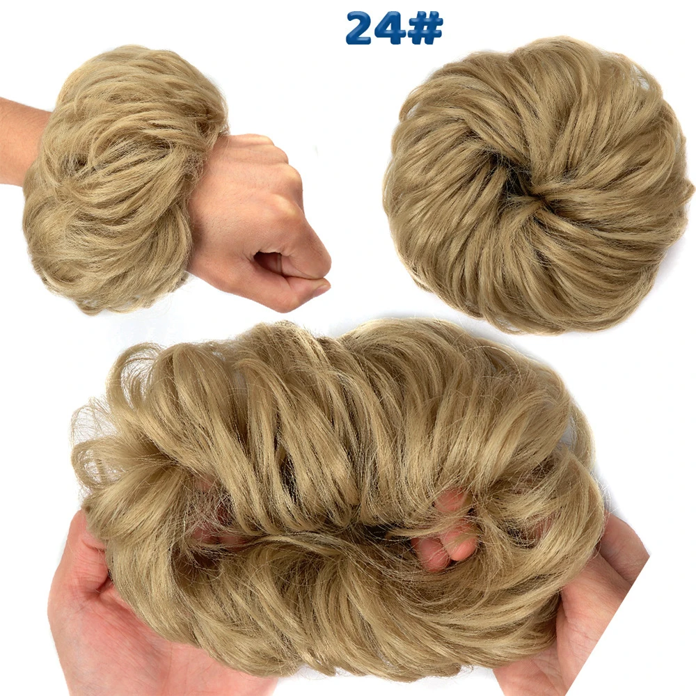 Дешевый пучок волос, кудрявый шиньон с резиновой лентой, Коричневые Серые синтетические волосы, накидка на пучок, хвост для девочек