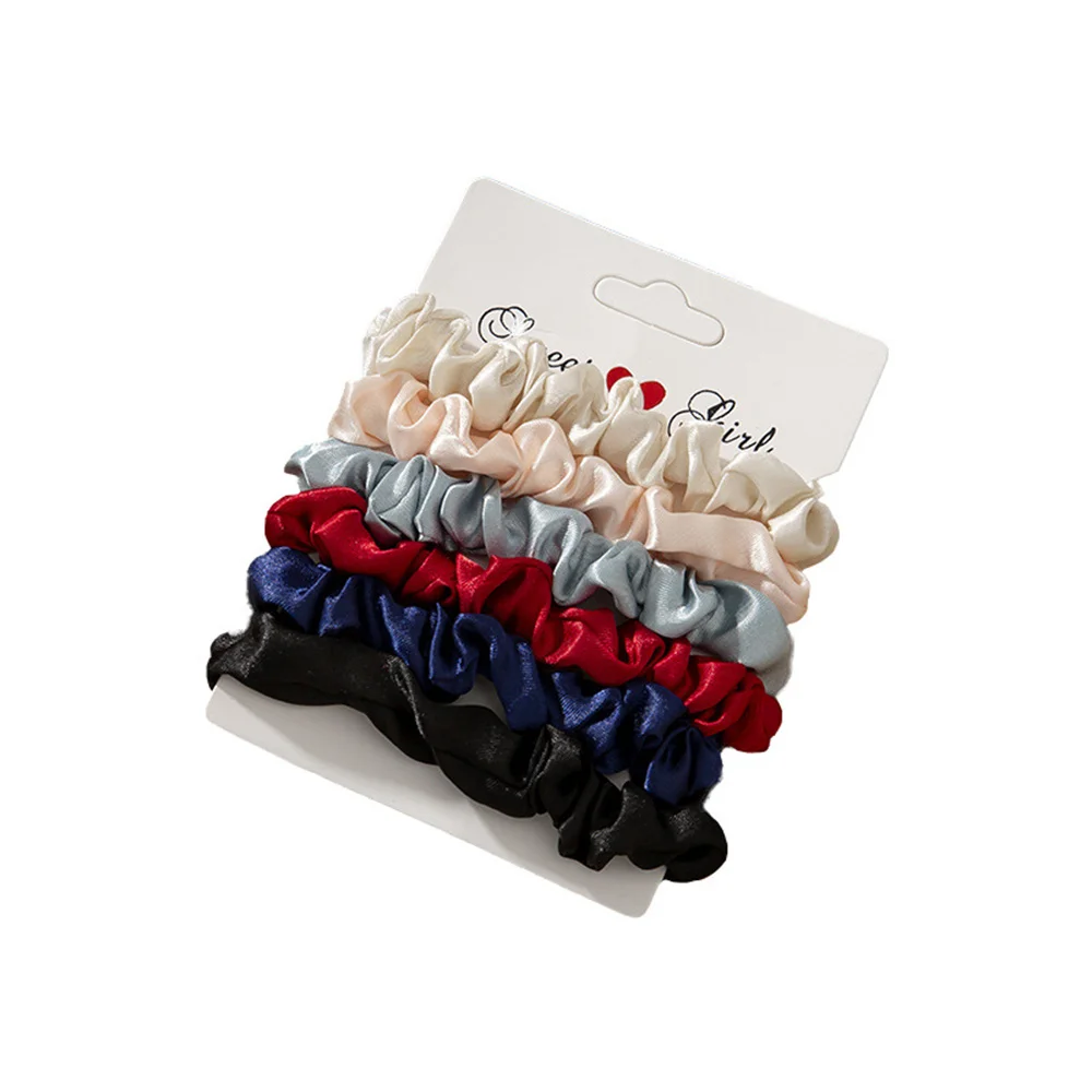 6 шт., женские атласные резинки для волос, из искусственного шелка