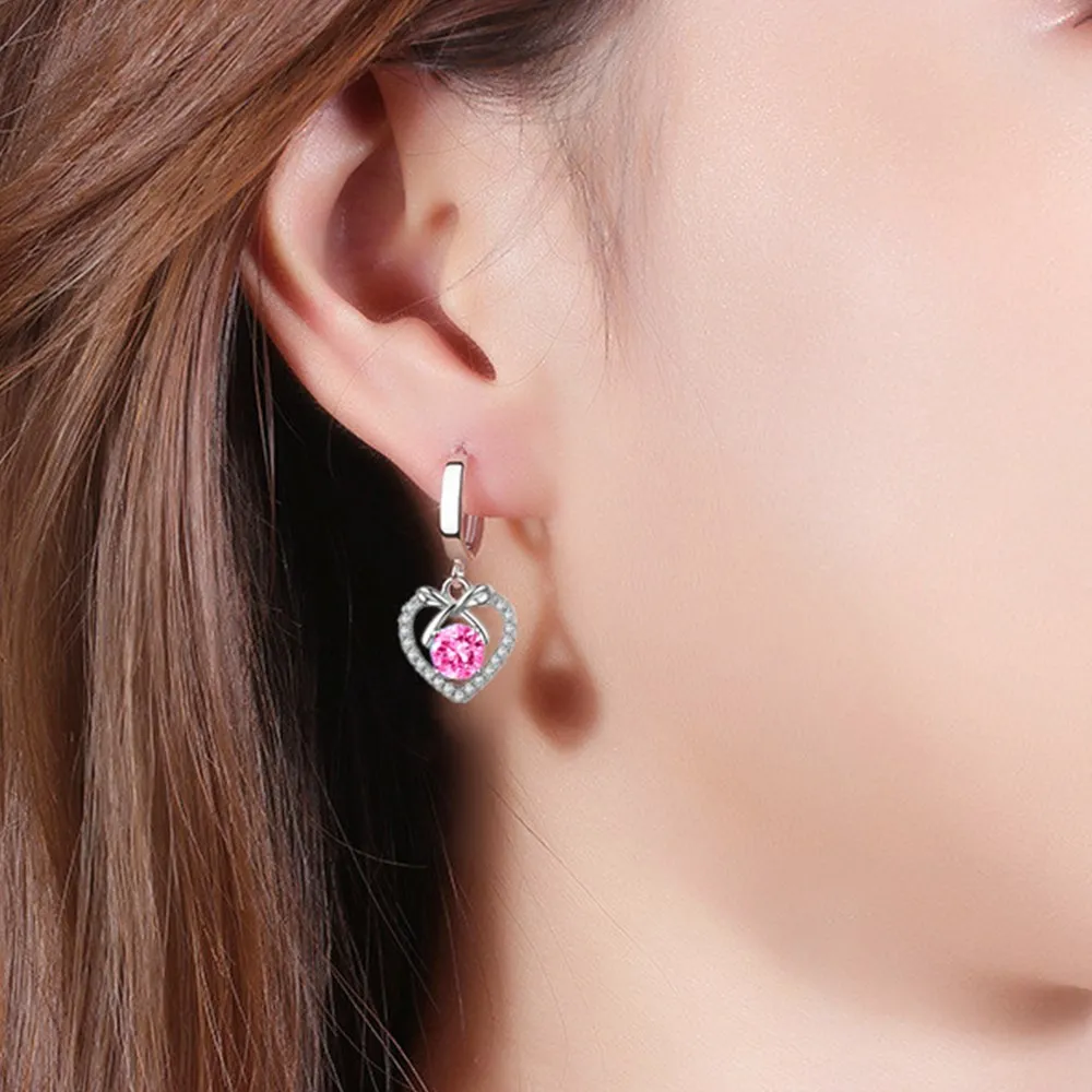 Женские серьги из серебра 925 пробы с голубым и розовым кристаллом