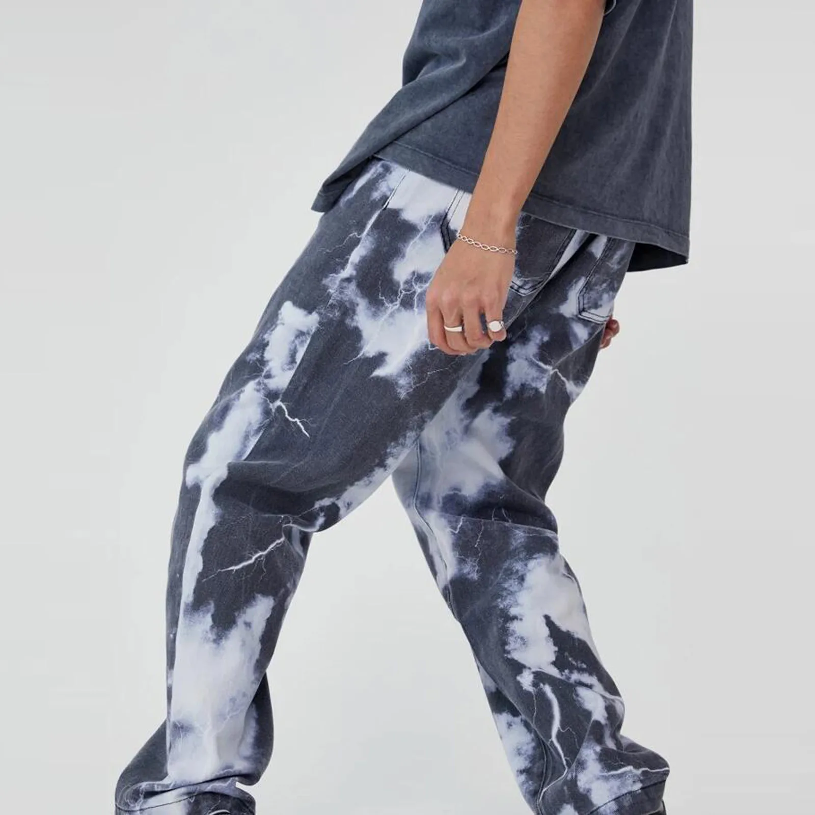 Брюки мужские джинсовые для скейта, свободные штаны с принтом в вид...