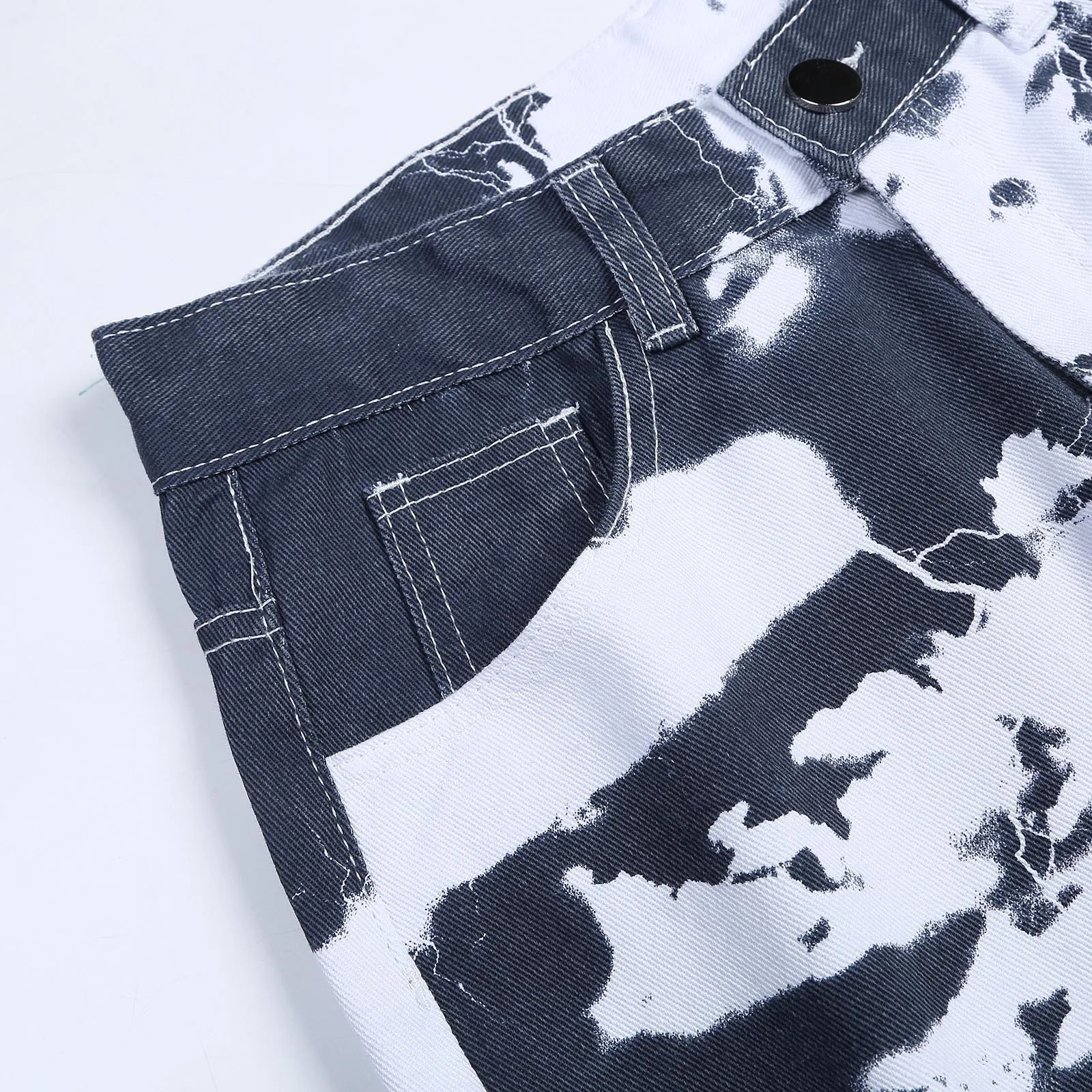 Брюки мужские прямые из денима, повседневные свободные штаны из денима с принтом, полной длины, прямые, уличная одежда, лето