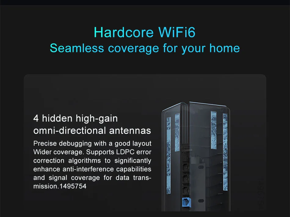 Встроенные четыре всенаправленные антенны с высоким коэффициентом усиления для предотвращения необоснованного размещения антенны от воздействия на сигнал. Поддержка алгоритма коррекции ошибок LDPC, так что охват сигнала шире, и производительность передачи сильнее.