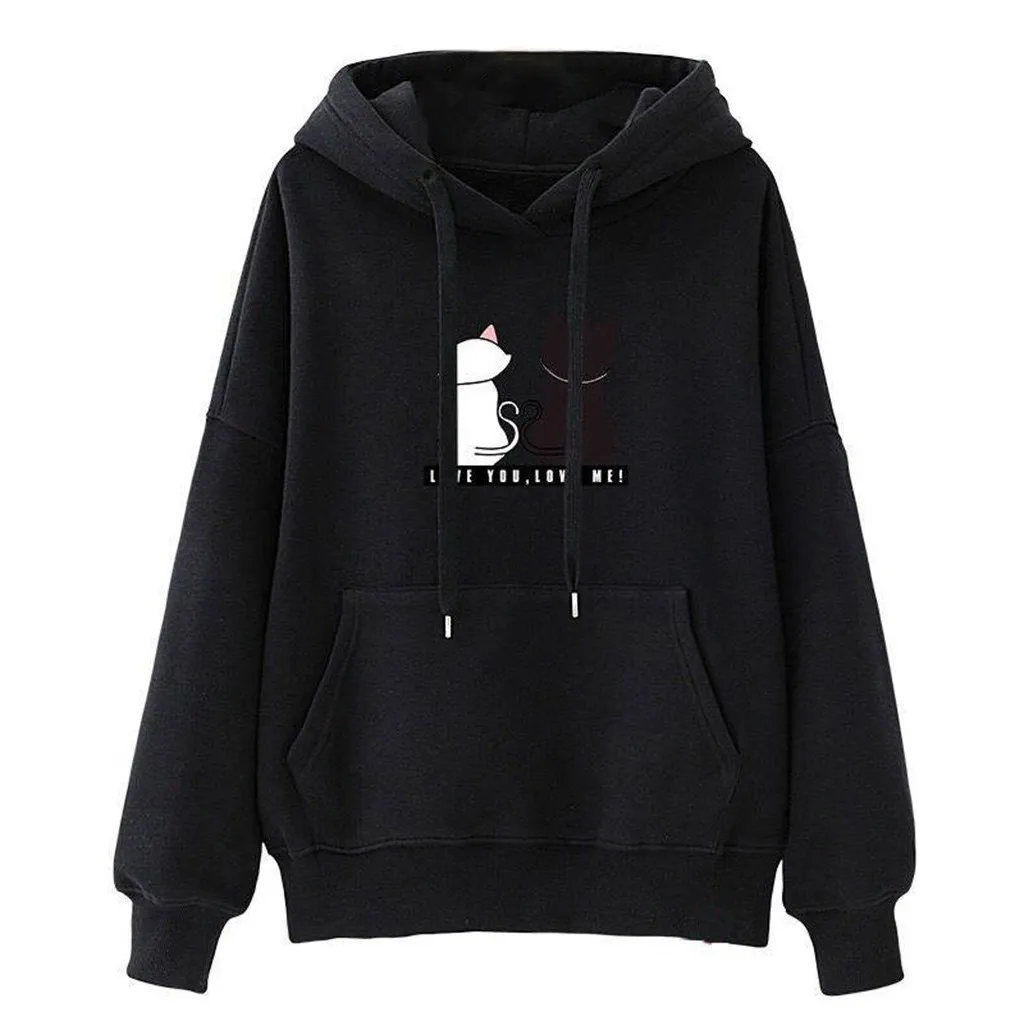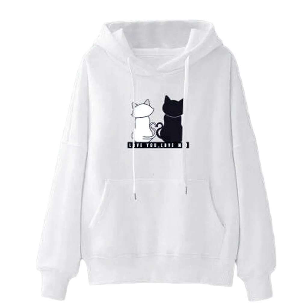 Винтажные толстовки с принтом кошек и пар, женские повседневные мил...