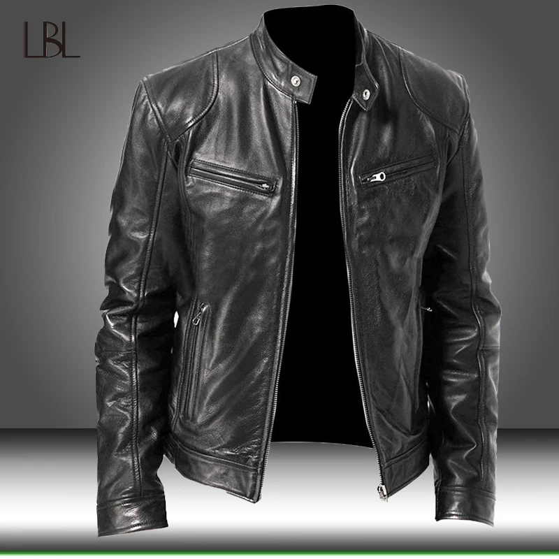 Мужские кожаные куртки, повседневная мотоциклетная кожаная куртка, ...