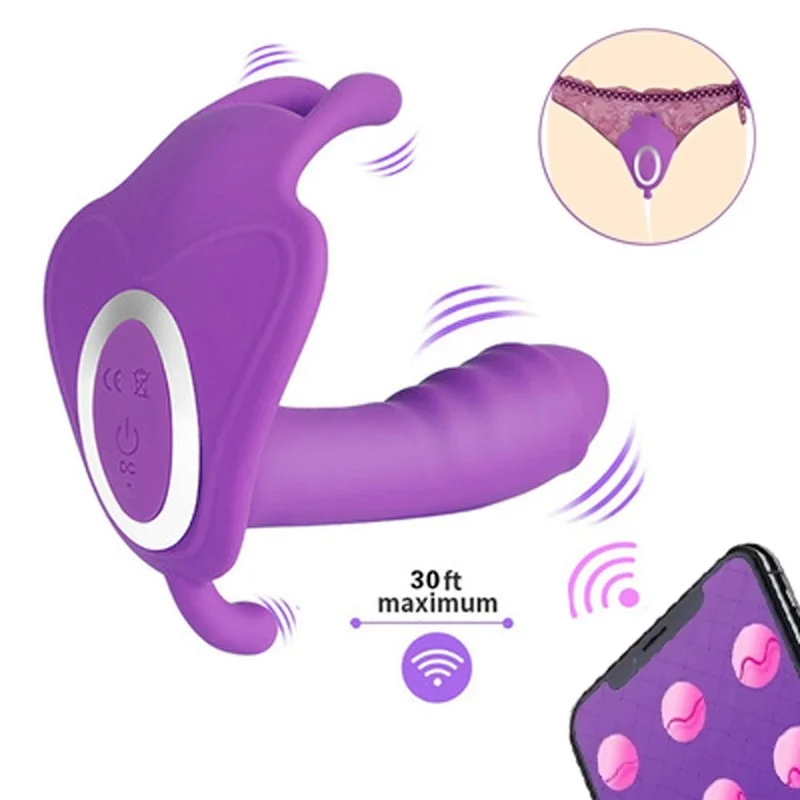 Женский фаллоимитатор-бабочка, вибратор с дистанционным управлением через приложение, Bluetooth, вагинальный фаллоимитатор, женские вибраторы для женских пар