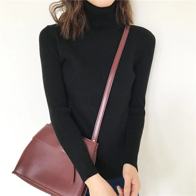 Пуловер с высоким воротником и длинным рукавом, облегающий свитер в...