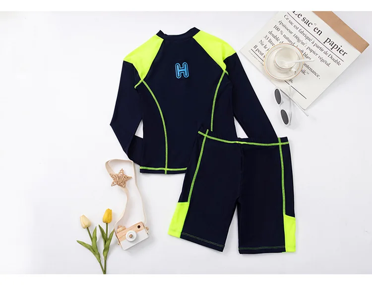 Детский Яркий купальный костюм для мальчиков, детская одежда для защиты от сыпи, с разрезом на пляже, новинка 2021, детская длинная детская одежда для мальчиков старшего возраста