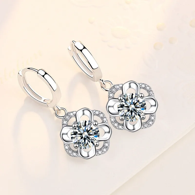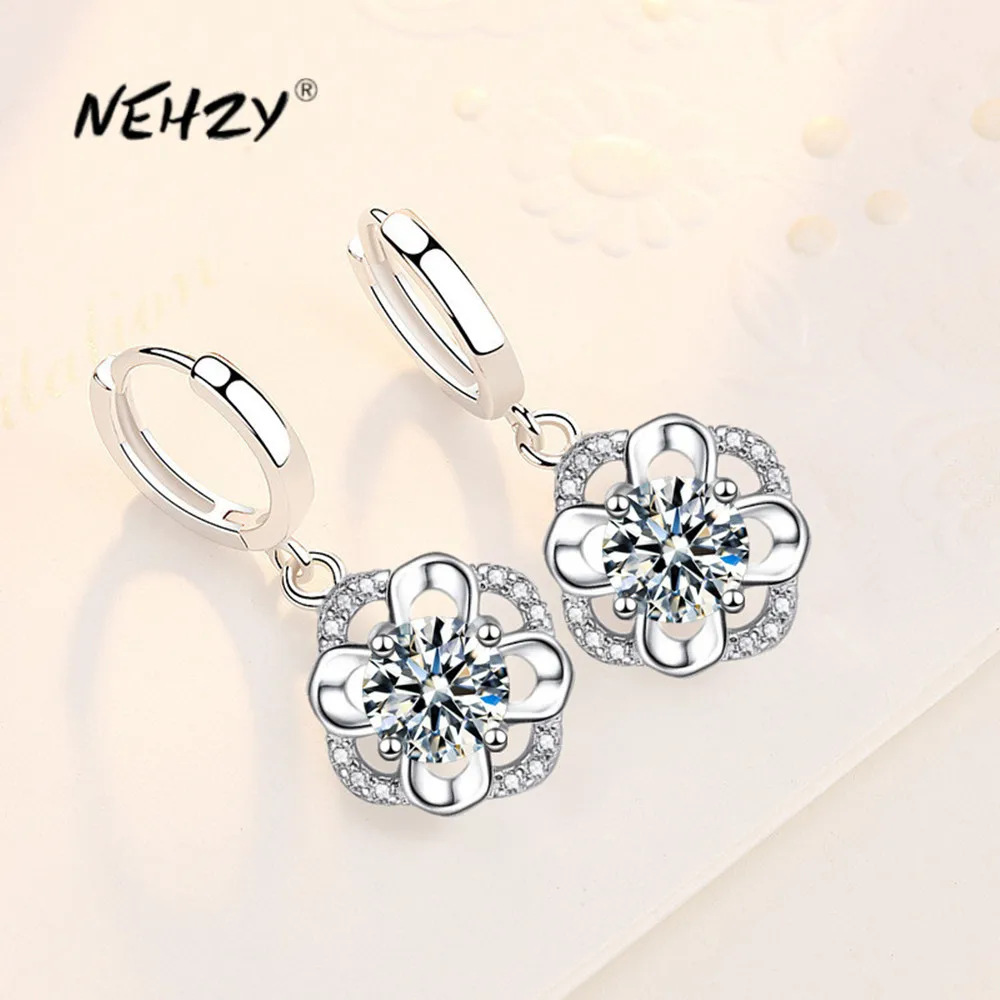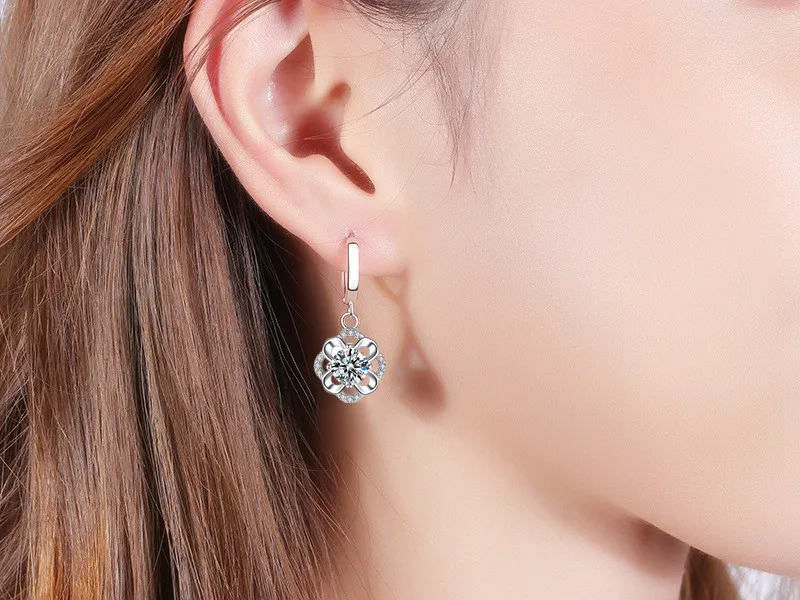 Женские серьги из серебра 925 пробы с голубым и розовым кристаллом