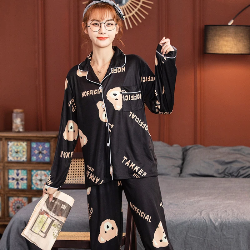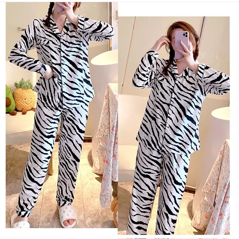 Женский пижамный комплект, одежда для сна, зимнее нижнее белье с длинным рукавом, ночная рубашка, пижамный комплект из 2 предметов, наборы ночных рубашек из вискозы и хлопка, штаны, Пижама