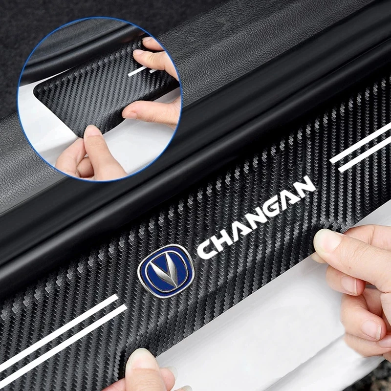 4 шт., наклейки на порог двери автомобиля, из углеродного волокна