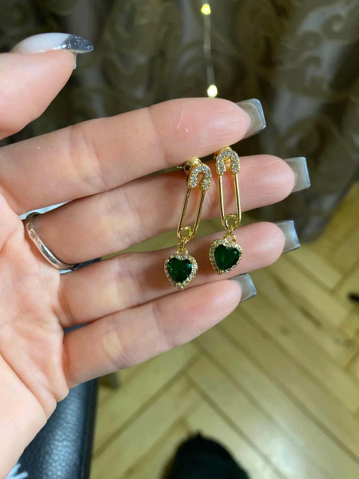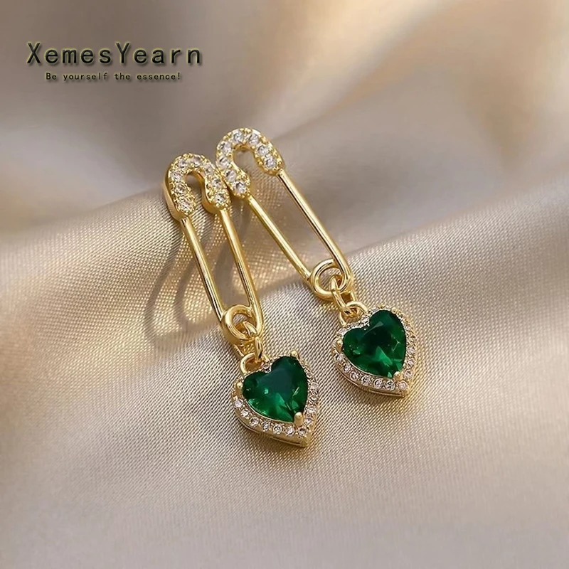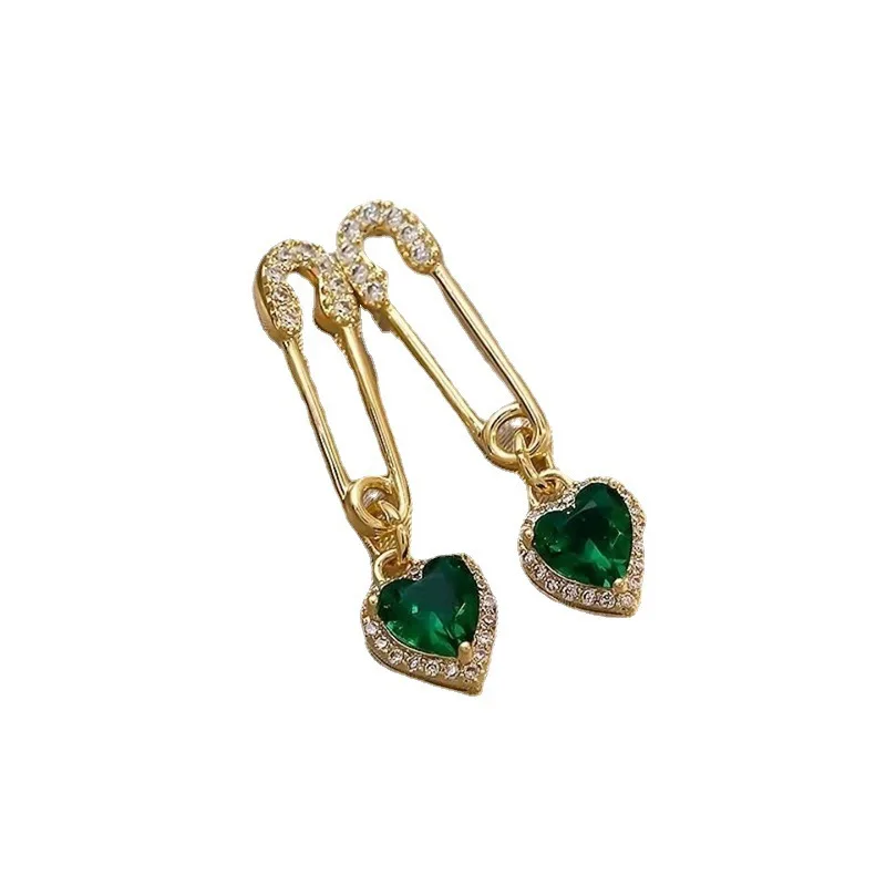 Новинка 2021, дизайнерские Висячие золотые серьги в форме зеленого сердца для женщин, необычные украшения для Хэллоуина, вечеринки, модные аксессуары для девушек