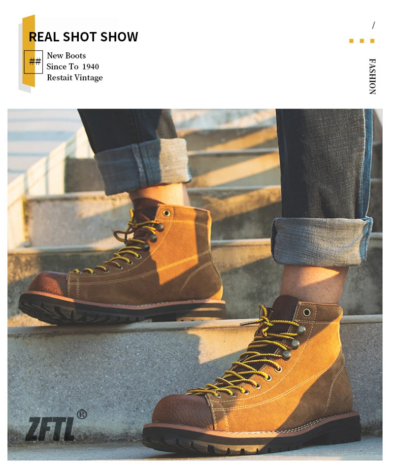 Мужские ботинки-мартинсы ZFTL, повседневные ботинки на шнуровке, мужские рабочие ботинки ручной работы, ботинки-дезерты из коровьей кожи