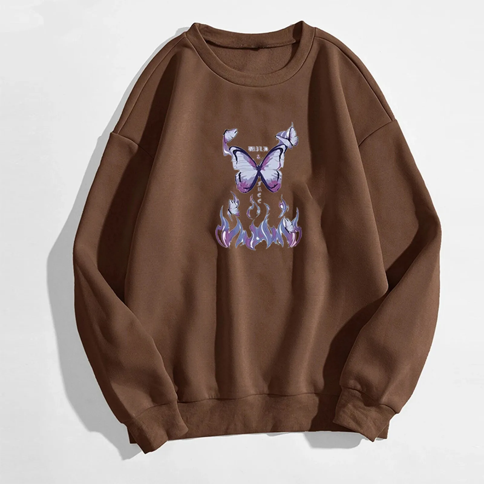 Женская толстовка с принтом бабочки, свитшот с длинным рукавом и графическим принтом, пуловер, Топ Sudaderas Con Capucha Harajuku, толстовки