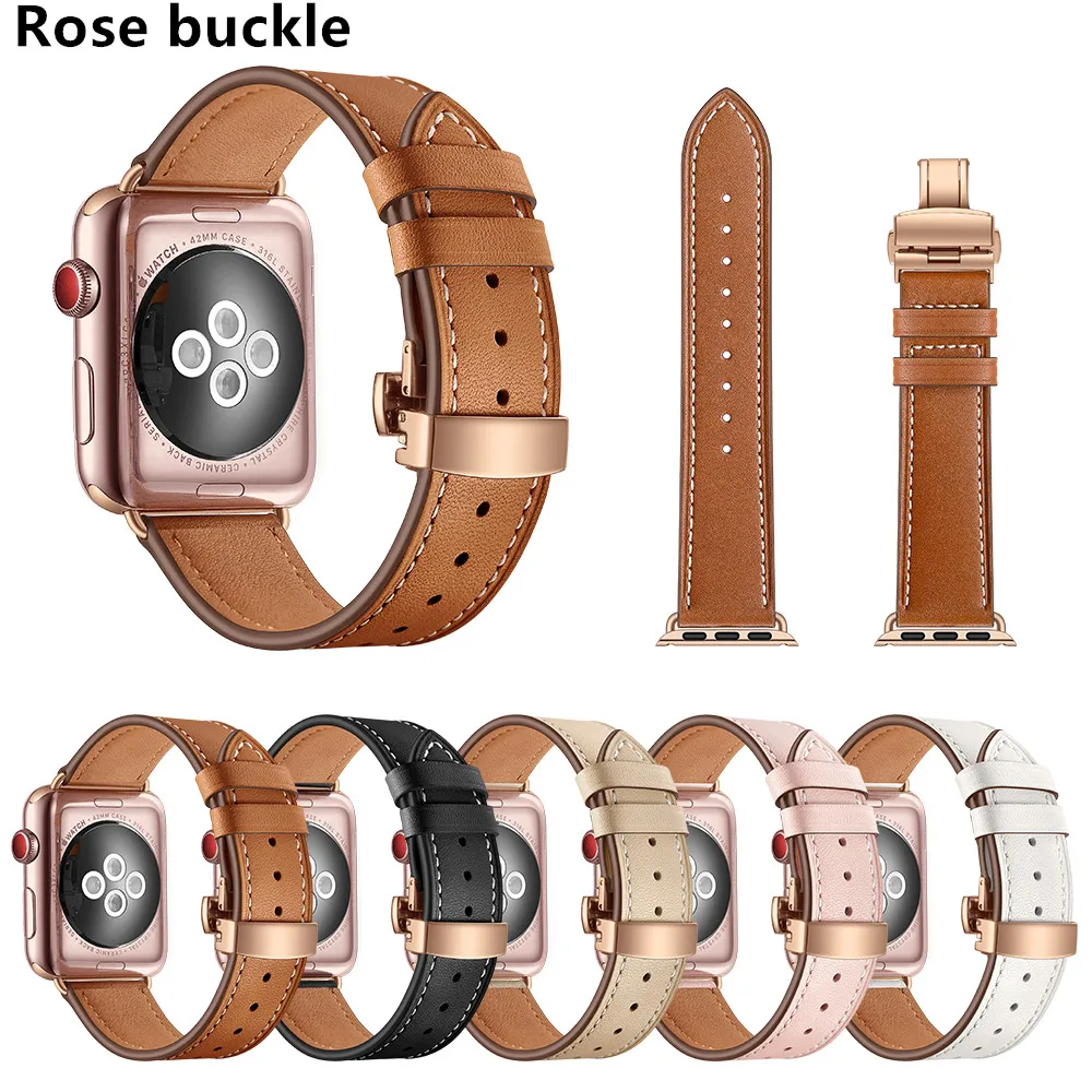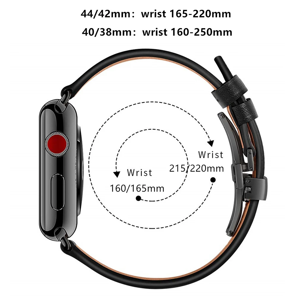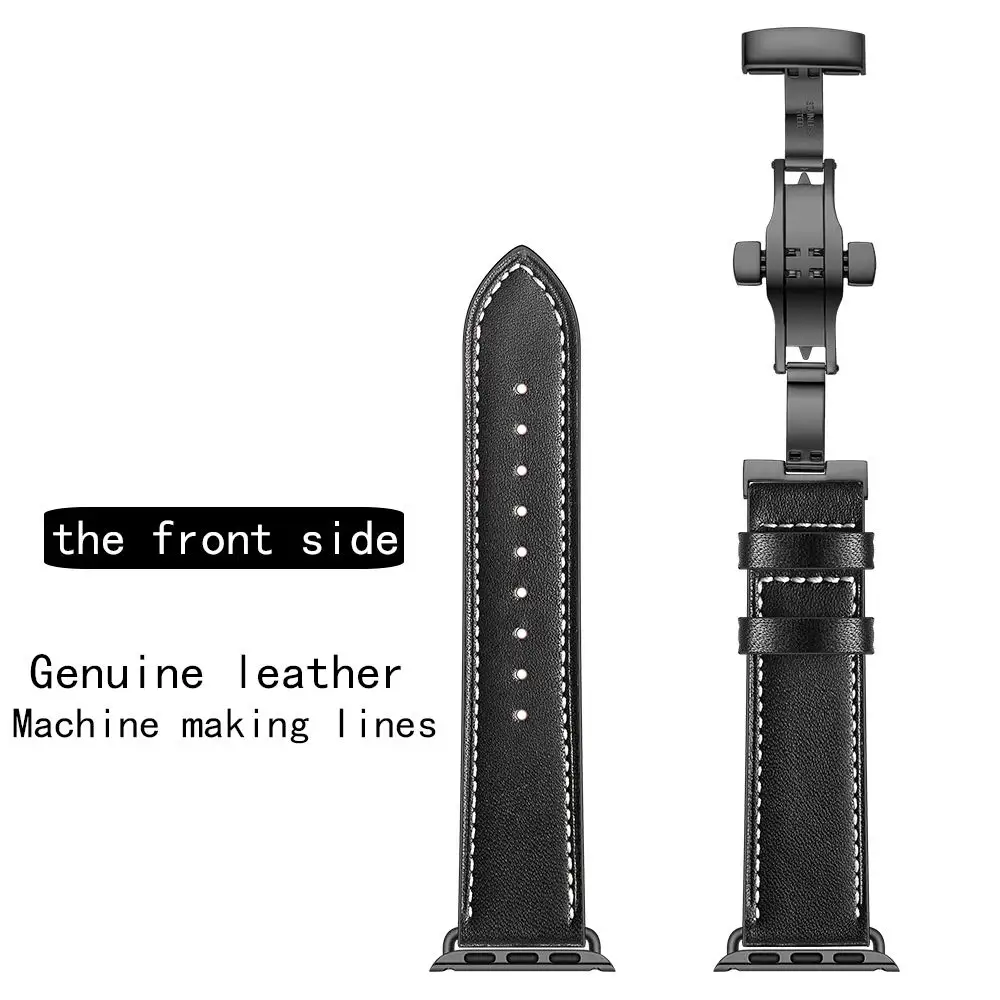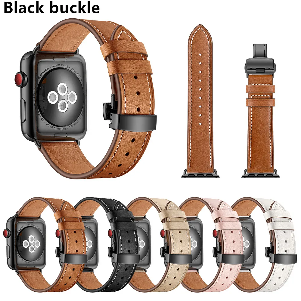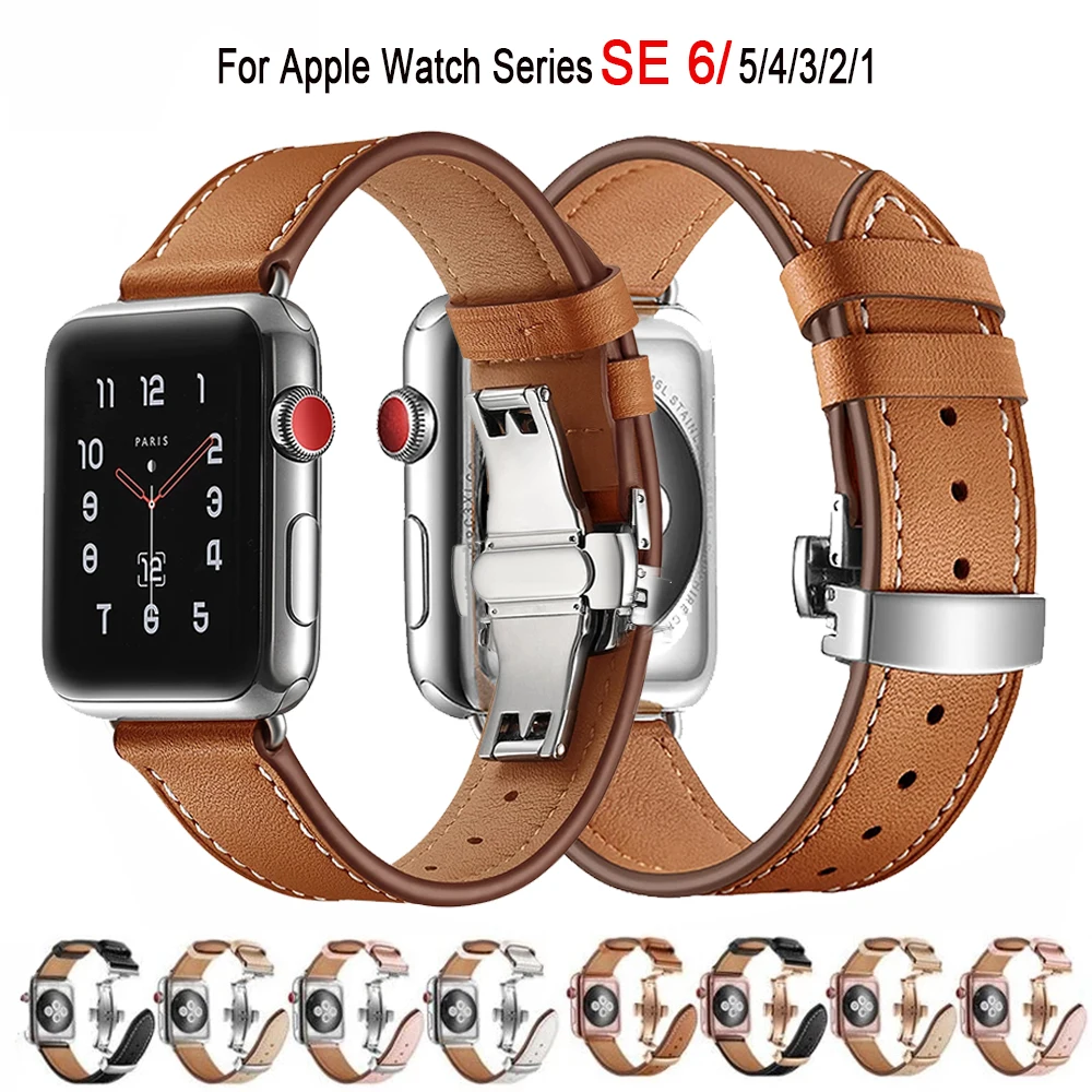 Ремешок из натуральной кожи для Apple Watch 6 SE 5 4 3 2 1, браслет с пряжкой-бабочкой для смарт-часов, 44 мм 40 мм 42 мм 38 мм