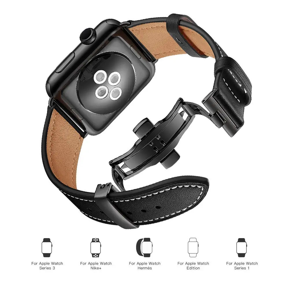 Ремешок для часов Apple Watch, кожаный, с застежкой-бабочкой, 44404...