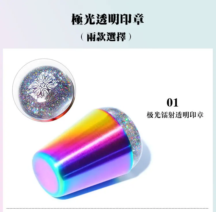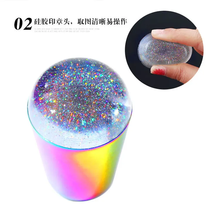 Штамп для ногтей с радужной ручкой, блестящая голографическая голов...