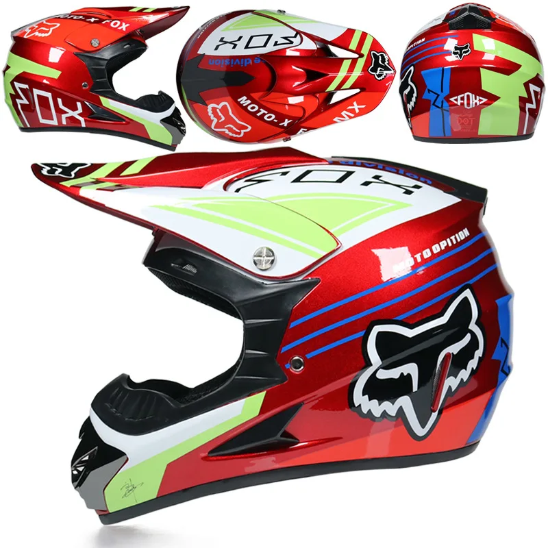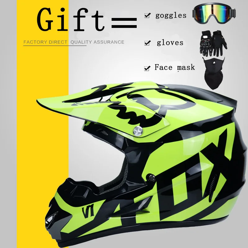 Шлем мотоциклетный в горошек, гоночный шлем для мотокросса, на все лицо, 3 шт. в подарок
