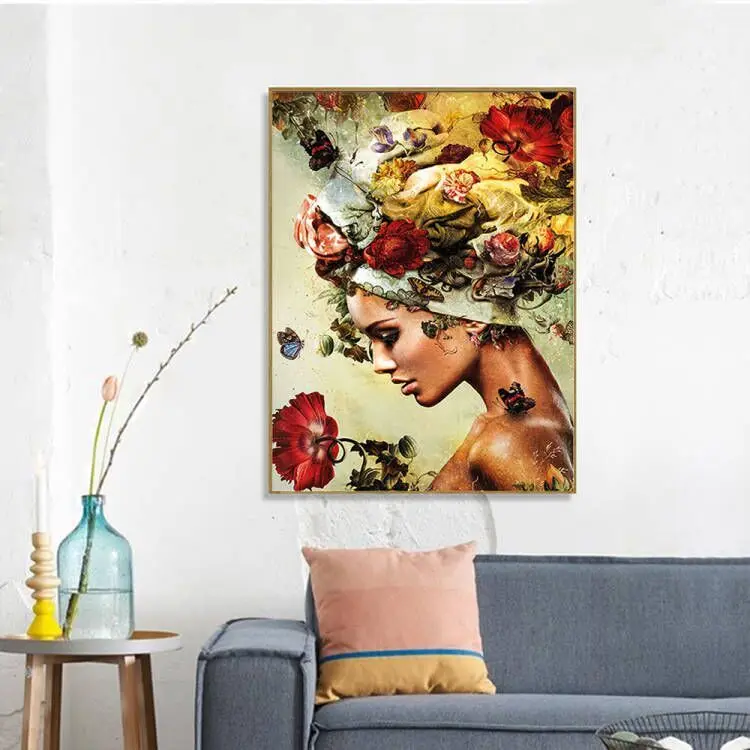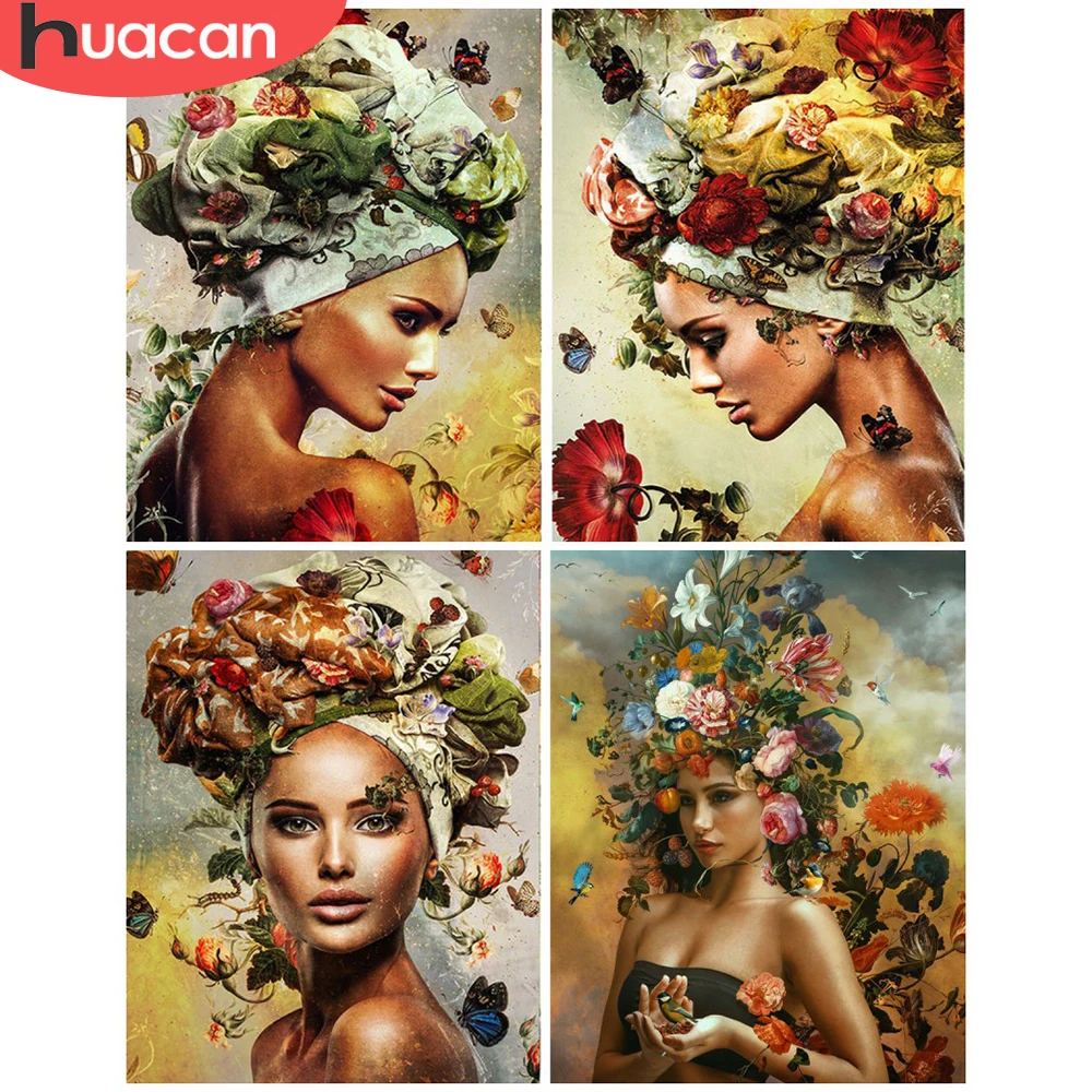 Хуакан раскраска по номеру женщина портрет рисунок на холсте DIY живопись по номерам Цветок для взрослых украшение дома DIY рамка