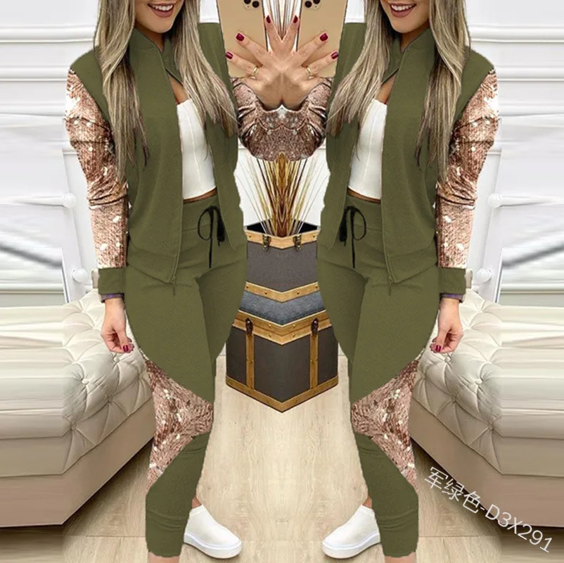 Женский спортивный костюм с леопардовым принтом, пальто на молнии и длинные штаны