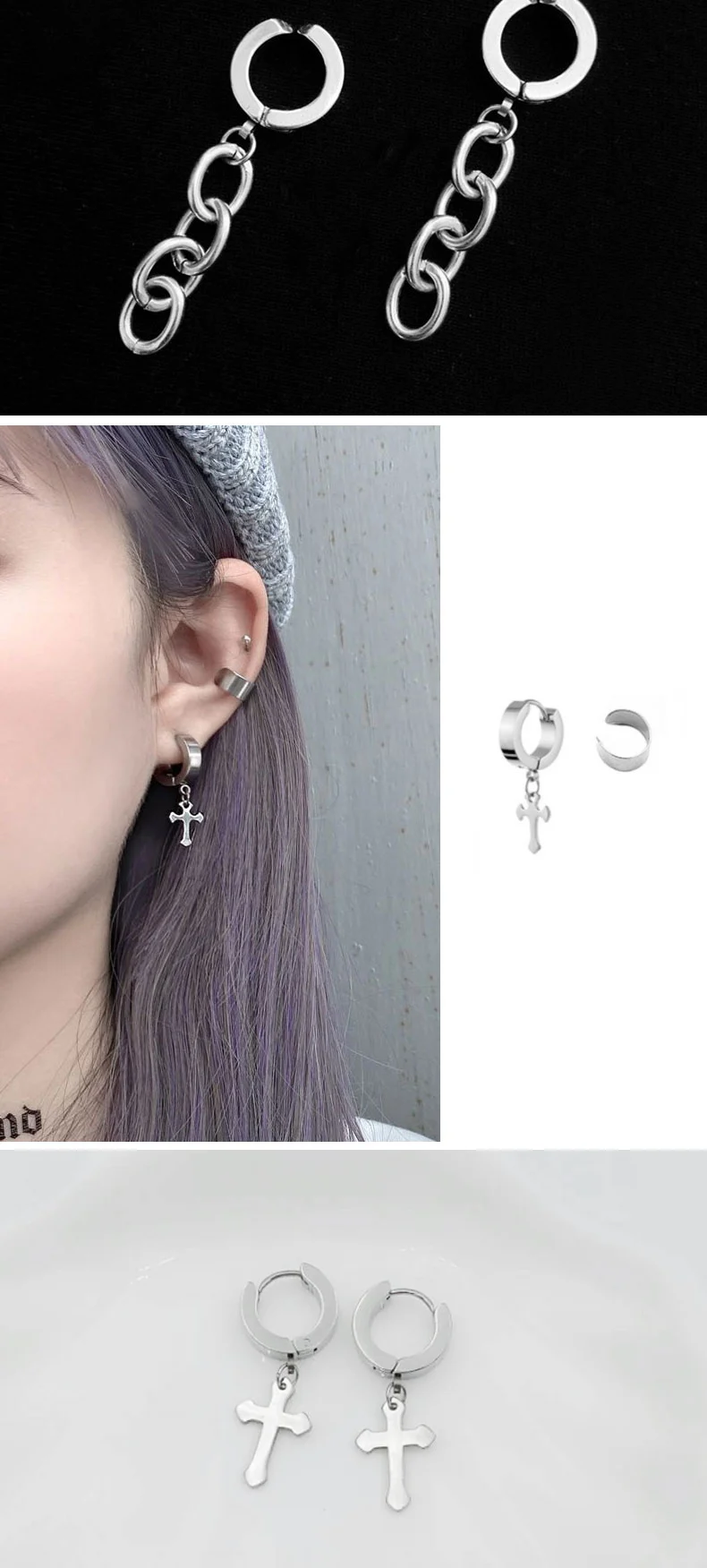 Серьги-Клипсы из нержавеющей стали для подростков, ювелирные украшения для ушей в стиле панк, уличная крутая цепочка серебристого цвета, 1 шт.
