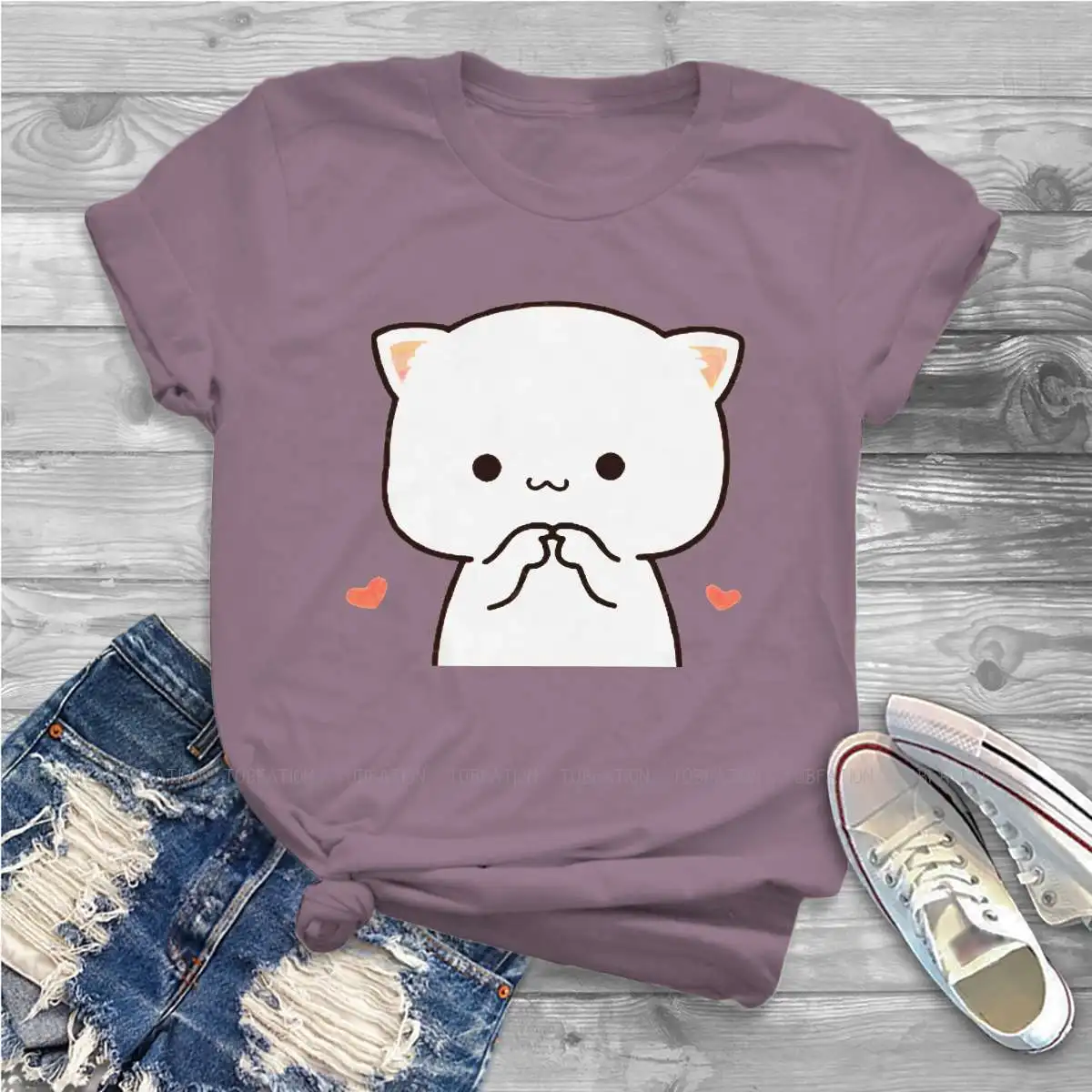 Футболка Mochi в стиле хип-хоп с принтом персика, милый кот, любовь, сердца, рилаккума, необычная уличная одежда для отдыха, уникальная футболка с коротким рукавом 4XL