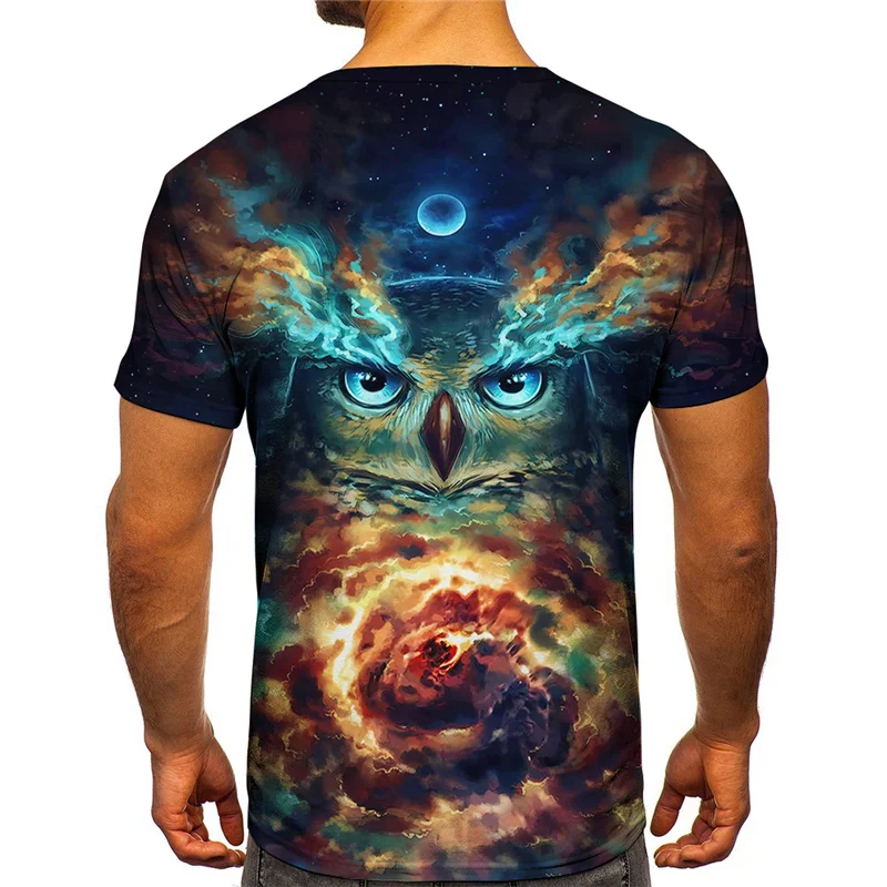 Мужская футболка с 3D-принтом совы, летняя футболка большого размер...