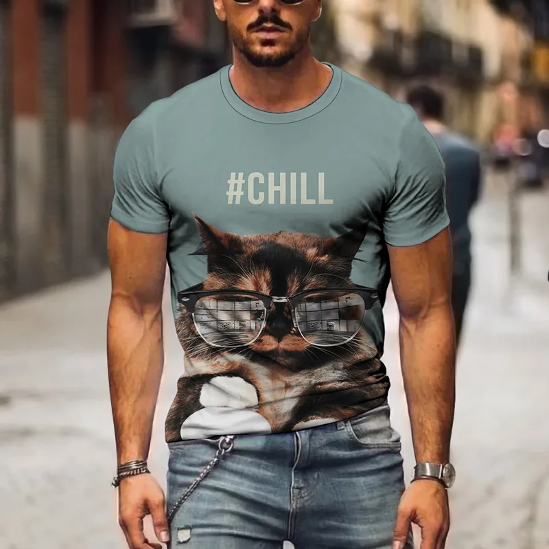 Футболка мужская с 3D принтом кота, тенниска с коротким рукавом, кр...