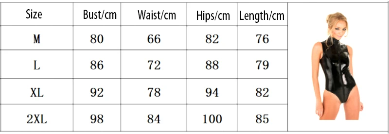 Особенности:Материал: спандекс, кожаЦвет: черныйРазмер: M, L, XL,XXL (пожалуйста, обратитесь к таблице размеров для фактического размера s).Пожалуйста, убедитесь, что эти фактические измерения подойдут вам.(1 дюйм = 2,54 см)Посылка включает в себя: 1 кожаное боди