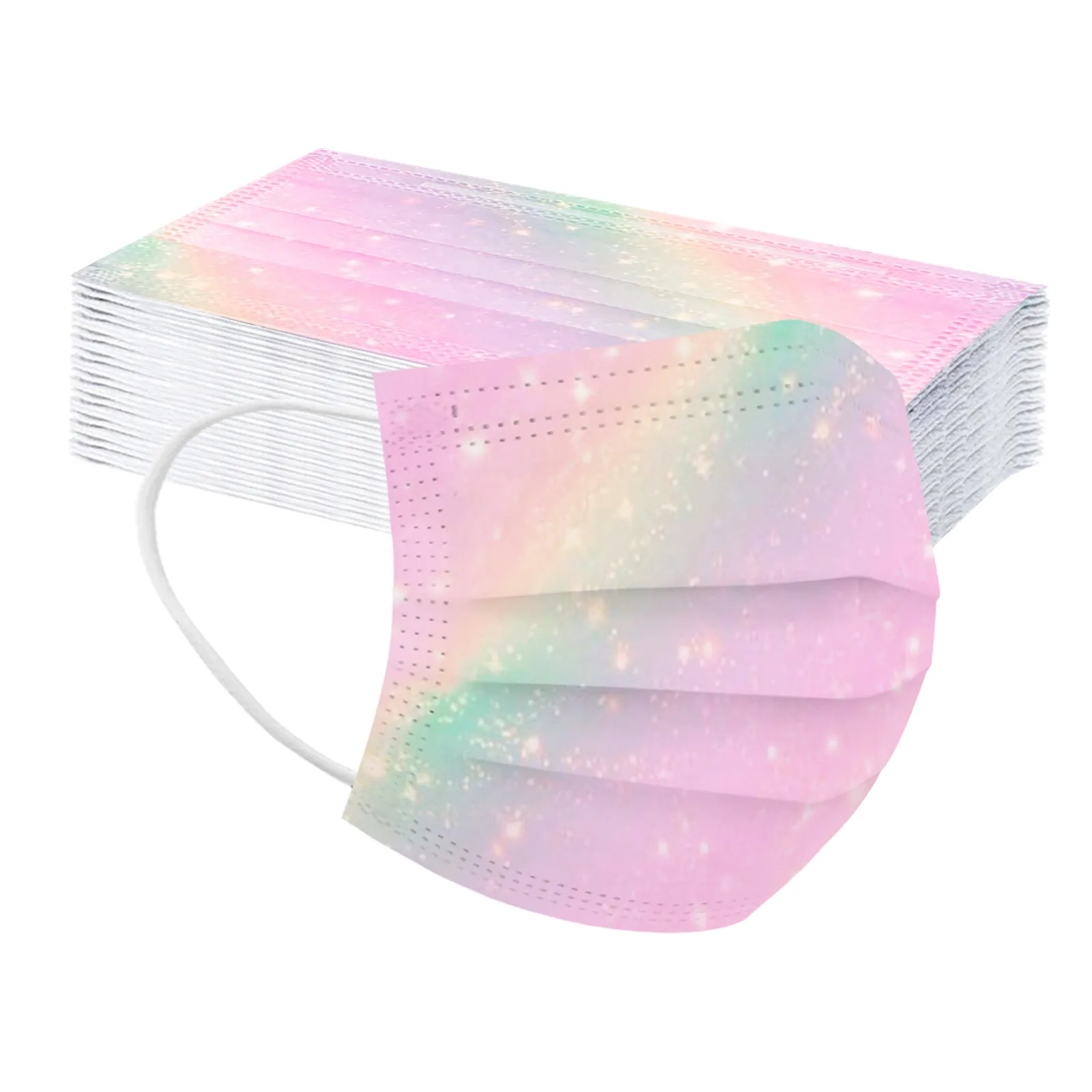 3 слоя ткани одноразовые маски, он безопасен для здоровья и безопасный для вас, чтобы использовать. Дышащий материал и милые узоры, что делает его полезным и модным. Специальный дизайн ткани, обеспечивает некоторую защиту от пыли, автомобильных выхлопных газов, пыльцы и т. Д. Эластичная Ушная петля, легко носить и без давления на уши. Маникюрный салон или любые другие области, где может потребоваться защита