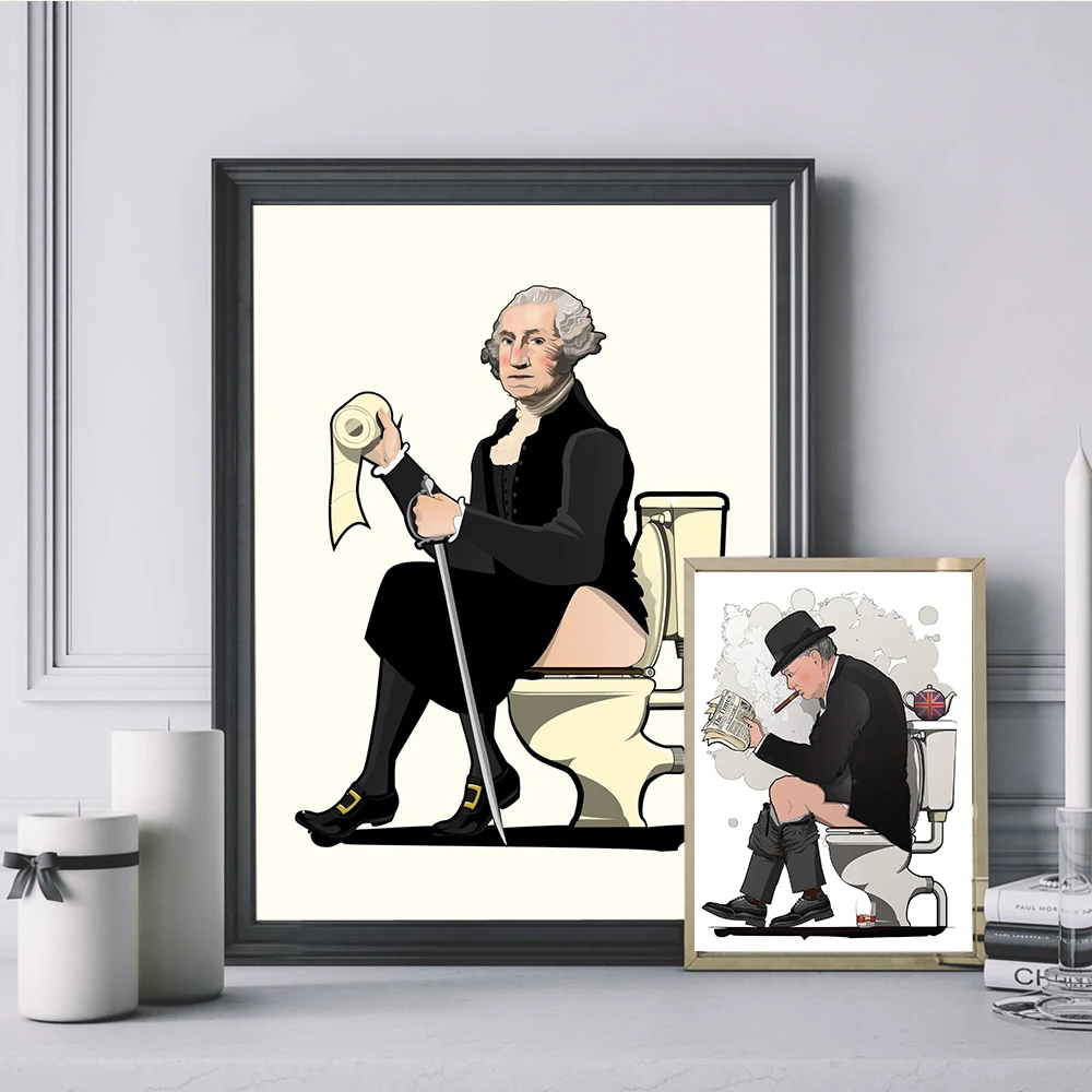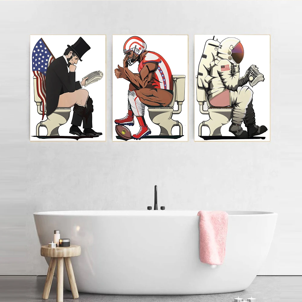 Забавная известная фигурка на туалете, плакаты и принты, Картина на холсте, американская ванная комната, настенные картины с юмором, украшение для дома