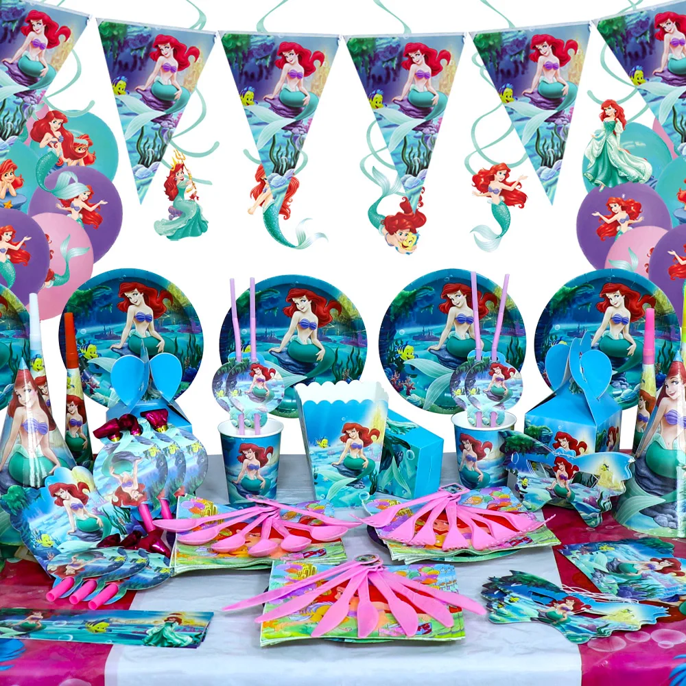 Русалка Ариэль, принадлежности для вечерние, набор одноразовой посу...