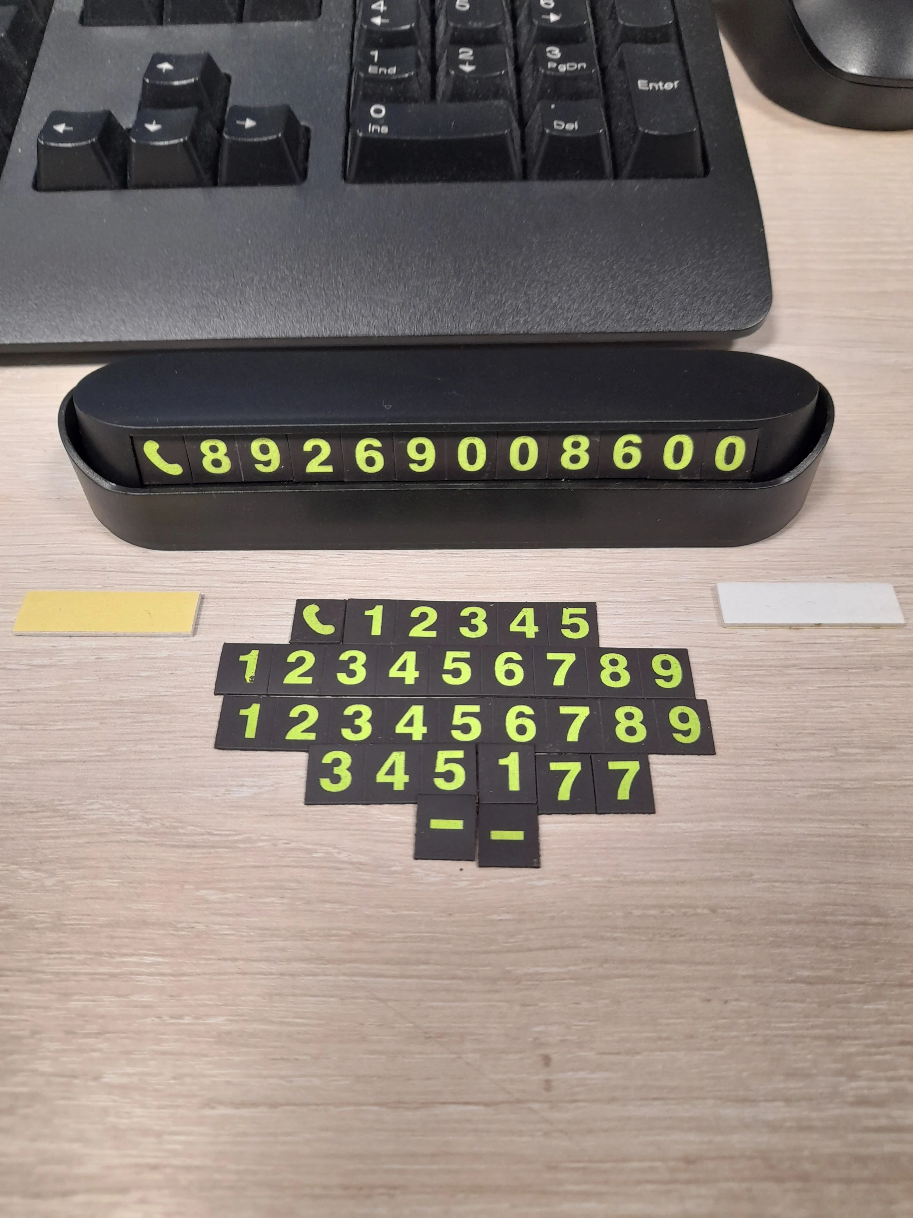 небольшая, аккуратная табличка с номером, цифры магнитятся к корпуса, подсвечиваются в темноте. брал 4 шт себе и родственникам.